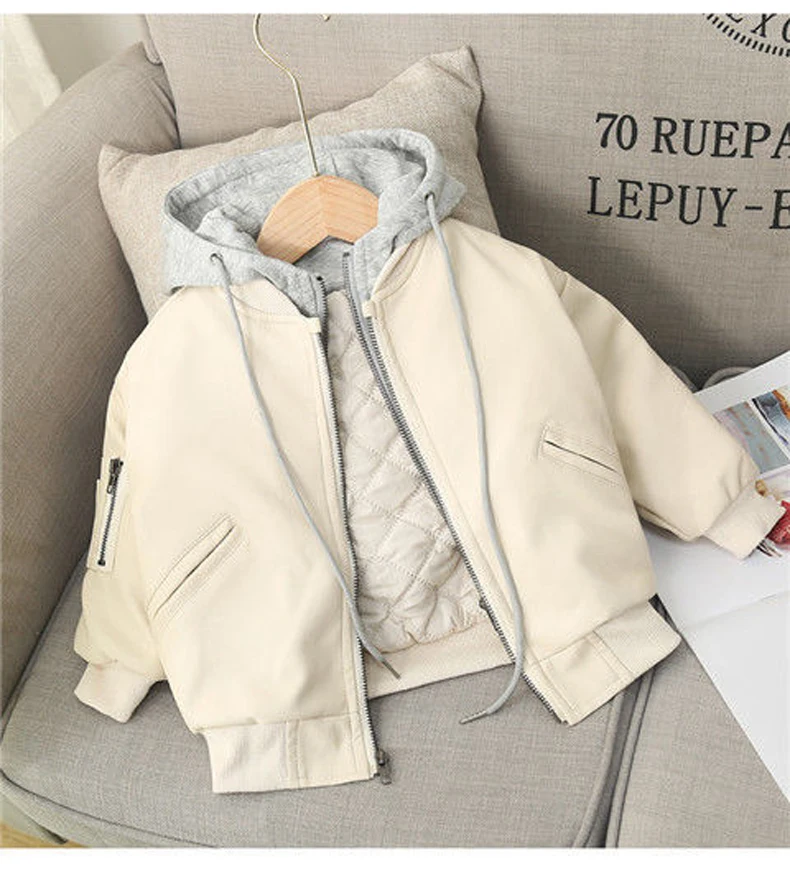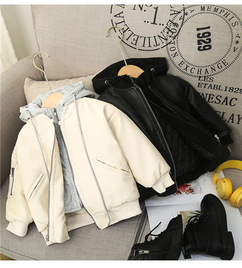2021 Fashion Autumn And Winter Child Coat Waterproof Baby Boys Leather Jackets Warm thick Hooded Children's Clothing
