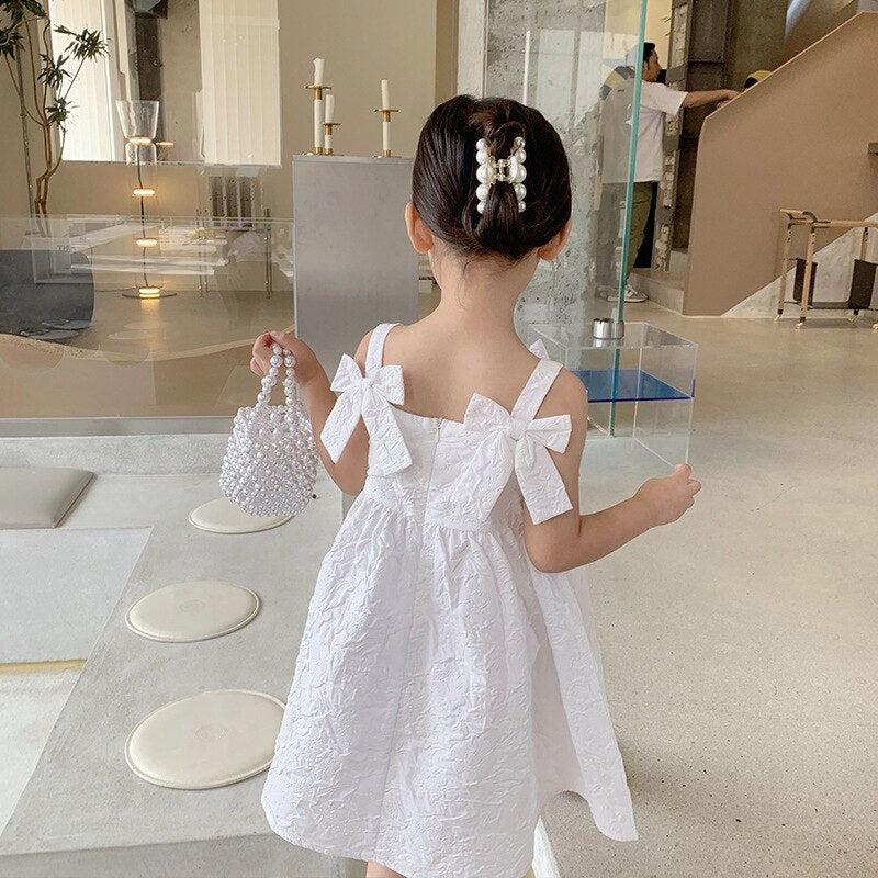 Girl Dress Children White Suspender Bow Clothes Small And Medium