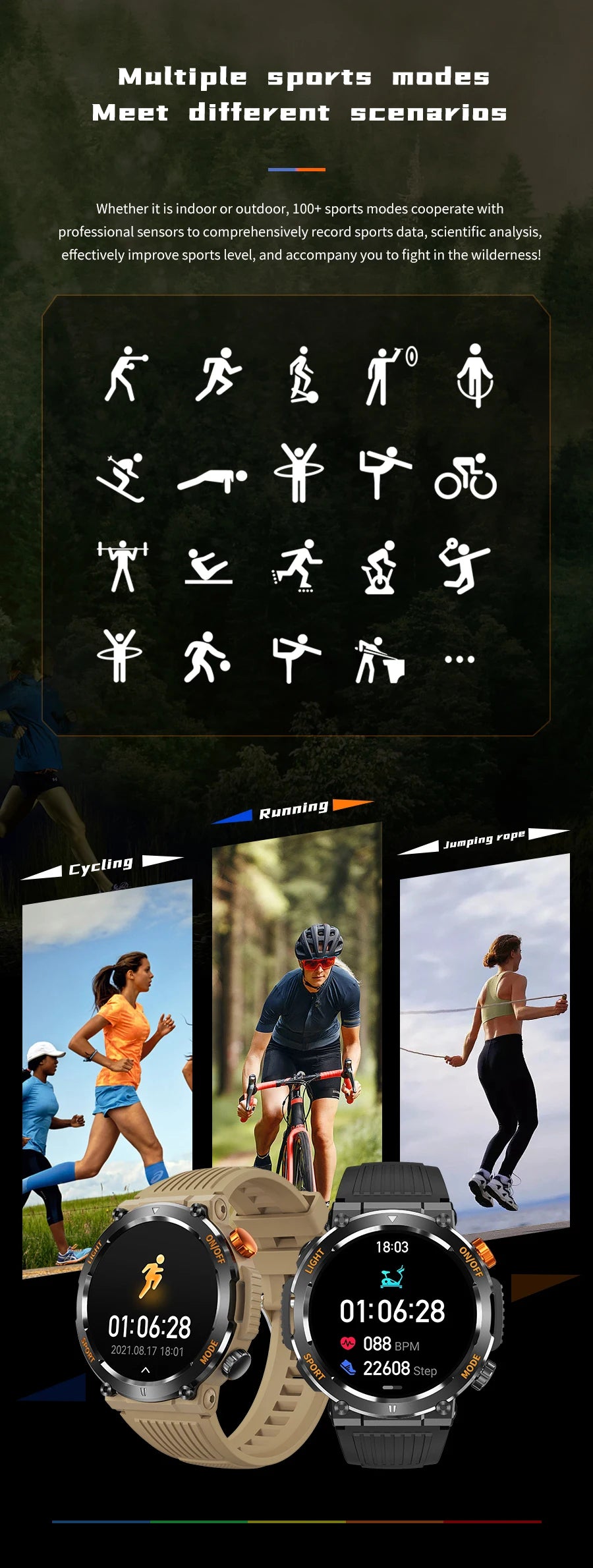6. Sports modes: 9 sports modes on the watch end, and massive sports modes on the APP end