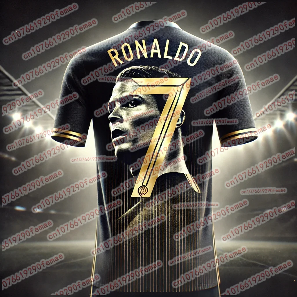 2025 New High end Luxury Cristiano Ronaldo Black Gold Commemorative Edition Sports T-shirt Outdoor Quick drying Through Jersey