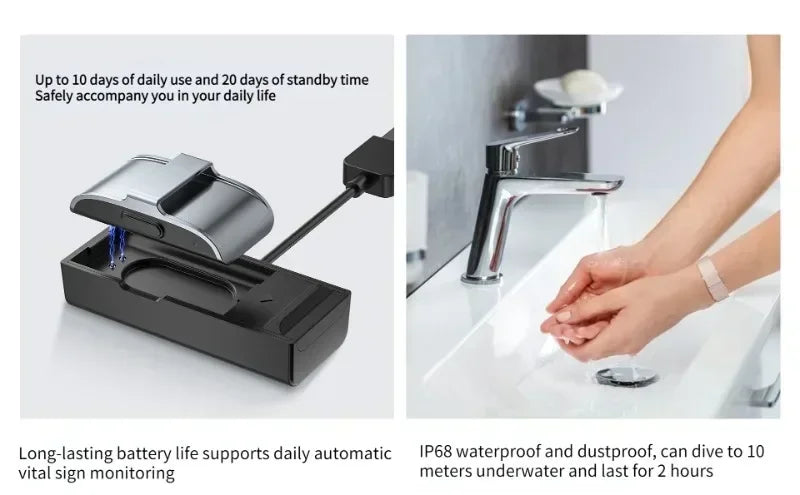 * Automatic continuous vital signs monitoring, bringing you a new healthy life experience. 7 * 24 automatic blood oxygen saturation, heart rate, heart rate variability, pressure, blood pressure, body temperature monitoring, take care of your body, and bring you a new healthy life experience.