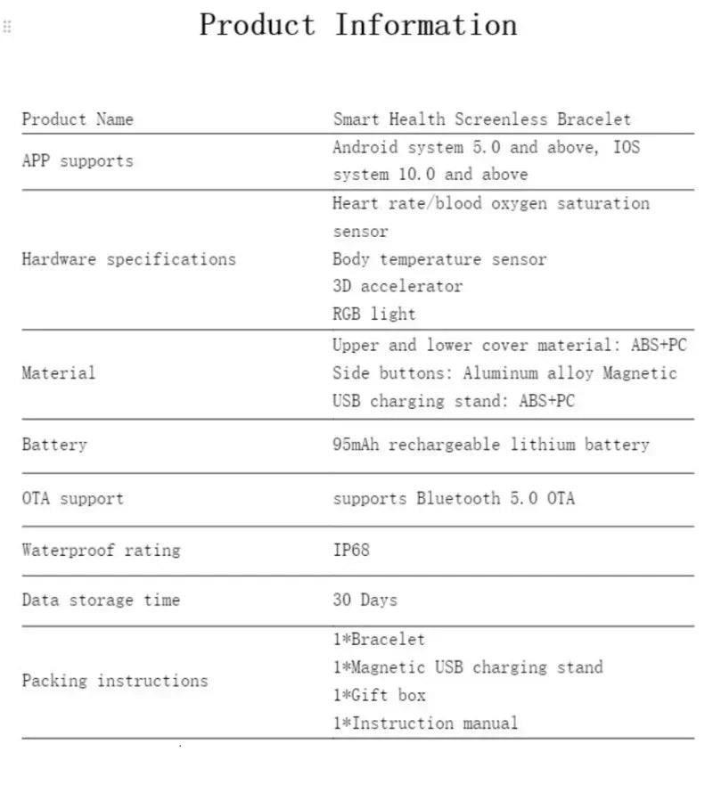 Function: Passometer,fitness tracker,sleep tracker,Blood Pressure,Blood Oxygen,Heart Rate Tracker,Activity Tracker