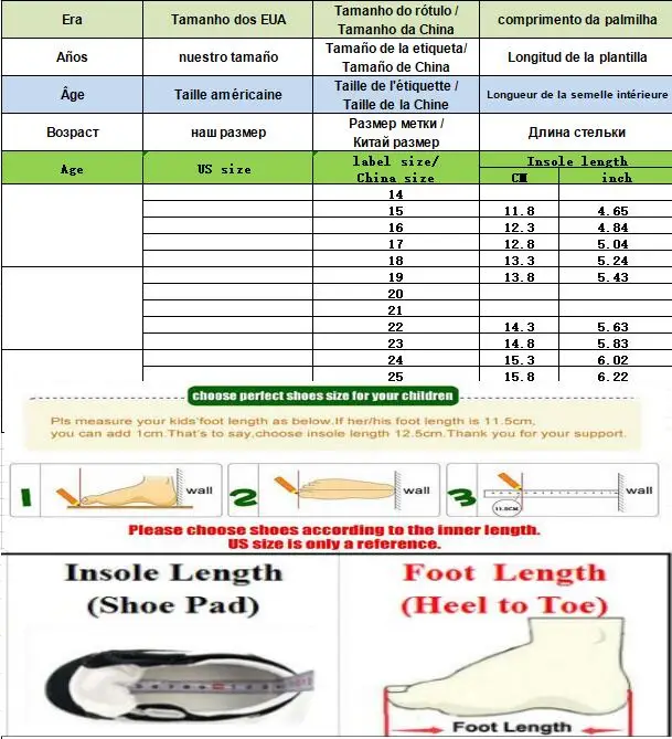 Please Check the shoes insole length of your baby Before place an order . We send shoes as the insole length .