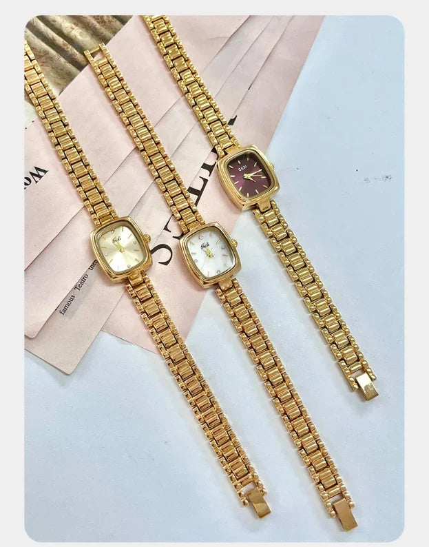 Bracelet Watch Retro TV niche high-end Gold Watches steel strip Waterproof Small Dial Women's Fashion Quartz Clock Wristwatches