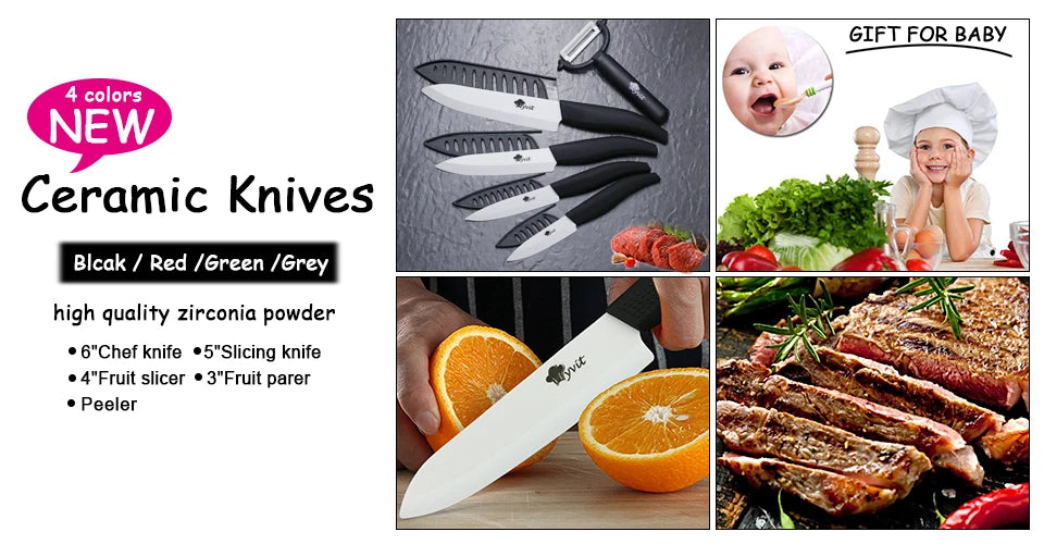 Precision Cutting with Zirconia Blades: Each knife in this kitchen knife set is made from durable zirconia, known for its sharpness and longevity. Unlike traditional chef knives, our ceramic knives retain their edge longer and resist wear, making them ideal for everyday use.