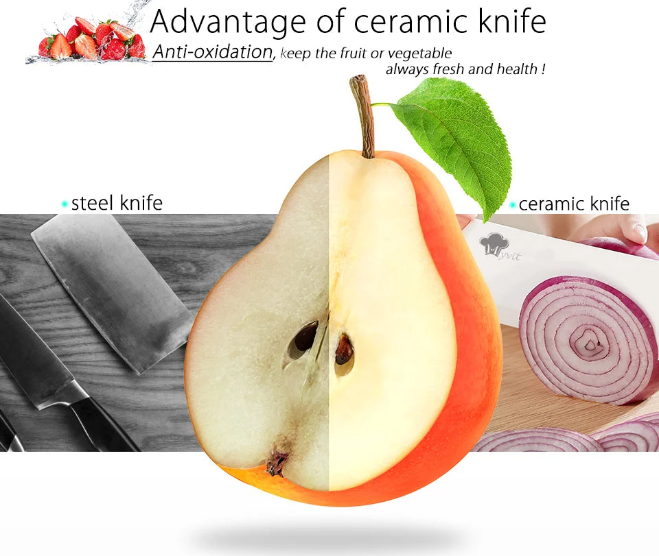 Introducing our Ceramic Knife Kitchen Knives Holder, the ultimate solution for precision slicing and effortless food preparation. This sleek set features a white blade ceramic knife that excels in utility and versatility, making it an essential tool for every chef. Designed for both professional cooks and home enthusiasts, this chef knife is perfect for a variety of tasks, from dicing vegetables to slicing meats with ease.
