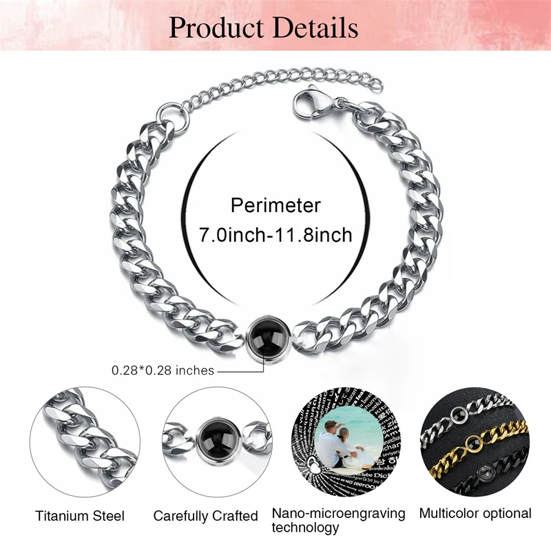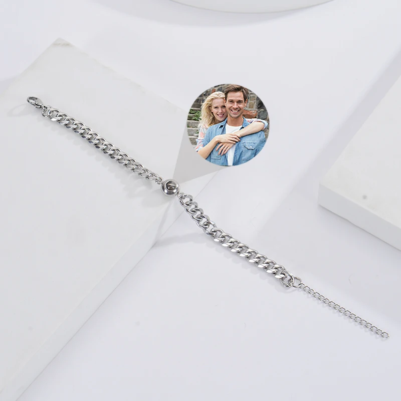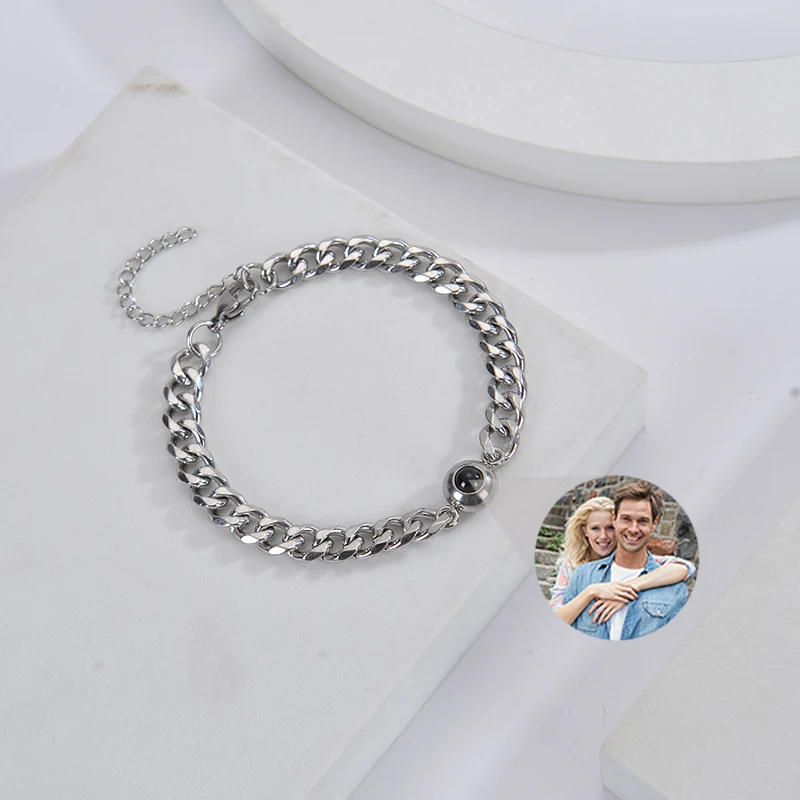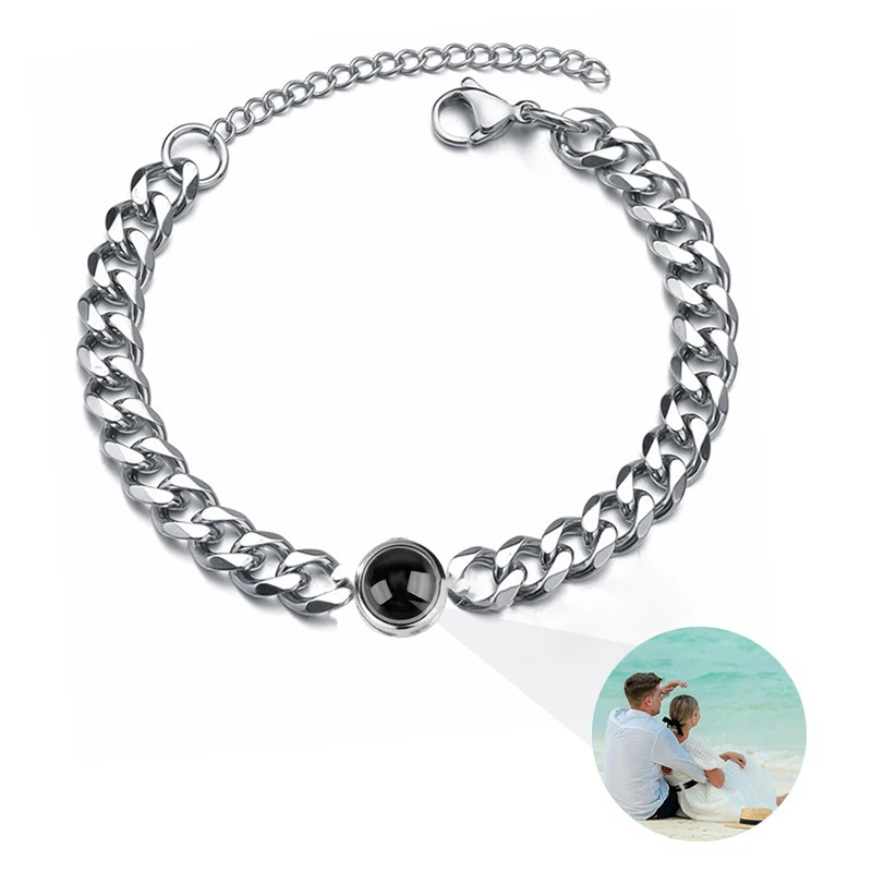 Custom Bracelet with Picture Inside Titanium Steel Cuban Link Chain Bracelet with Personalized Photo Projection for Men Women