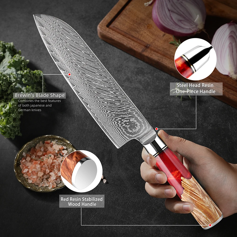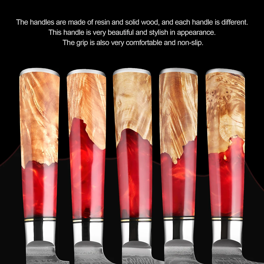 【High Quality Material】All knives' blade are made of 67 Layers Damascus Steel, strong & durable.