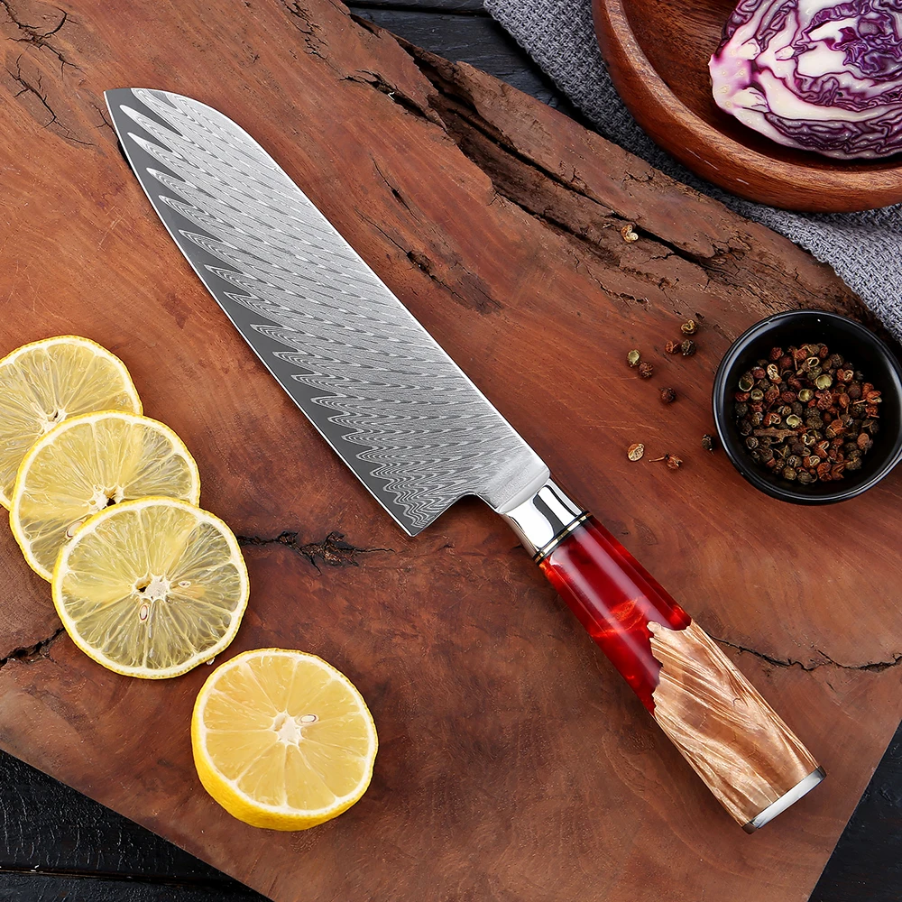 Premium VG10 Steel: Our Damascus Santoku knife features a high-quality VG10 steel blade, renowned for its superior edge retention and durability. Enjoy the precision of japanese knives that effortlessly glide through ingredients, making meal prep quicker and more enjoyable.