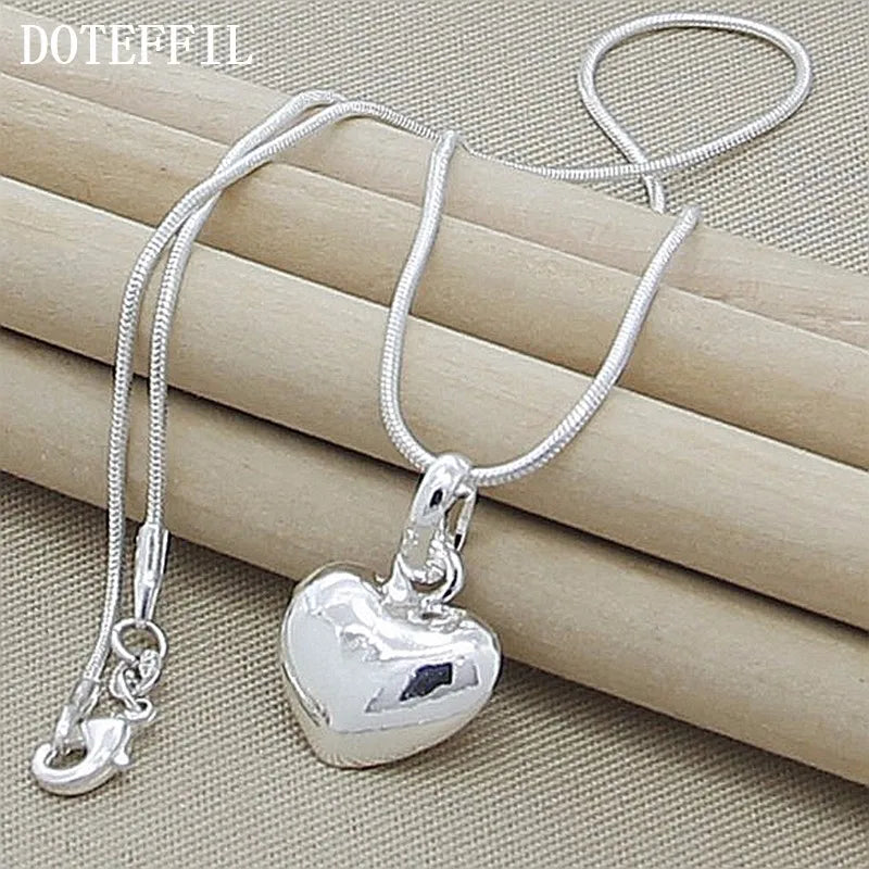 925 Sterling Silver Solid Small Heart Pendant Necklace (16-30 Inch Snake)