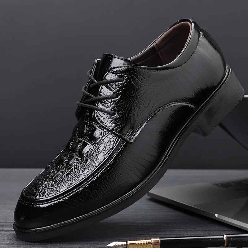 Elevate Your Style with Crocodile PU Black Leather Dress Shoes for Men