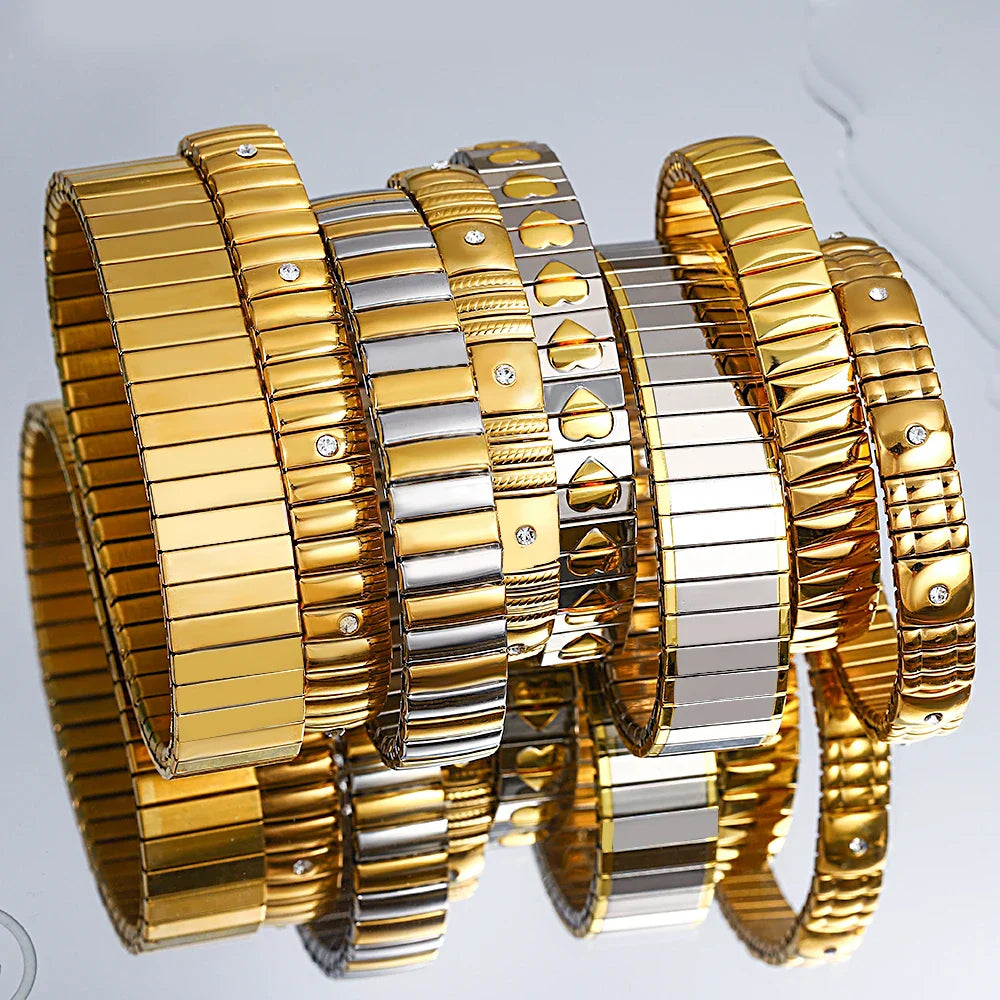 Freetry 18K Gold Plated Stainless Steel Adjustable Bracelet Fashion Elastic Metal Bracelet Trendy Jewelry Accessories Official