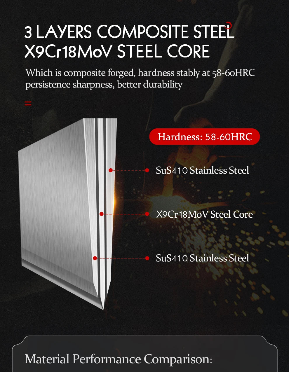 Elevate Your Culinary Experience with Our 7 or 8 Inches Slicing Knife: 3 Layers Composite Stainless Steel