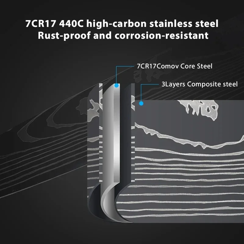 Durable and Easy to Maintain: Our High Carbon Stainless Steel Kitchen Knives are designed for longevity and easy maintenance. They resist corrosion and stains, ensuring that your kitchen knives remain in top condition even after frequent use. This durability rivals that of popular brands like Victorinox knives and Henkel knives, ensuring you get the best performance from your tools.