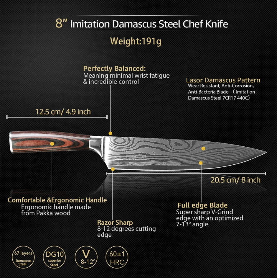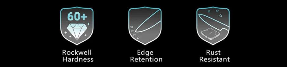 Premium High Carbon Steel: Our chef knives are made from 7CR17 high carbon steel, ensuring durability, strength, and long-lasting sharpness. This superior material not only enhances cutting performance but also makes these kitchen knives resistant to wear and tear.