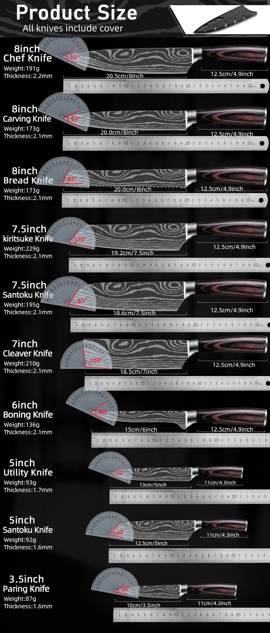 Elevate your cooking experience with the Kitchen Knife Professional Chef Knives Set from our store. Experience the precision, quality, and durability that only high carbon steel can offer. Order today and discover why we are considered one of the best rated knife sets on the market!