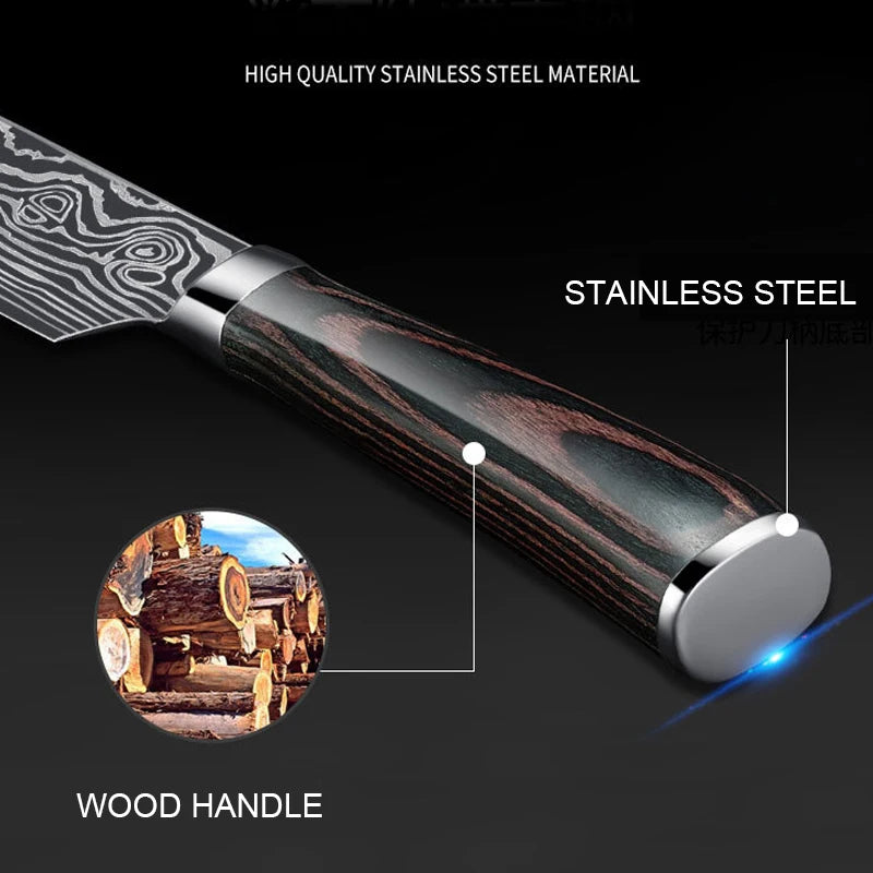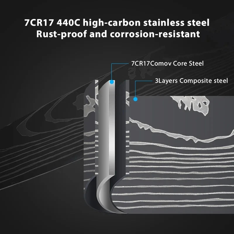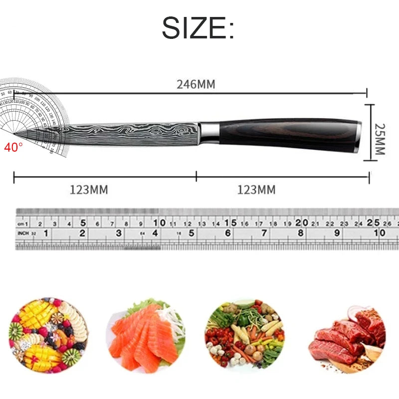 Damascus Laser Pattern: The stunning Damascus laser design not only enhances the knife's aesthetic appeal but also contributes to its cutting efficiency. This knife performs like renowned Japanese culinary knives and japanny knives, offering precision and style.