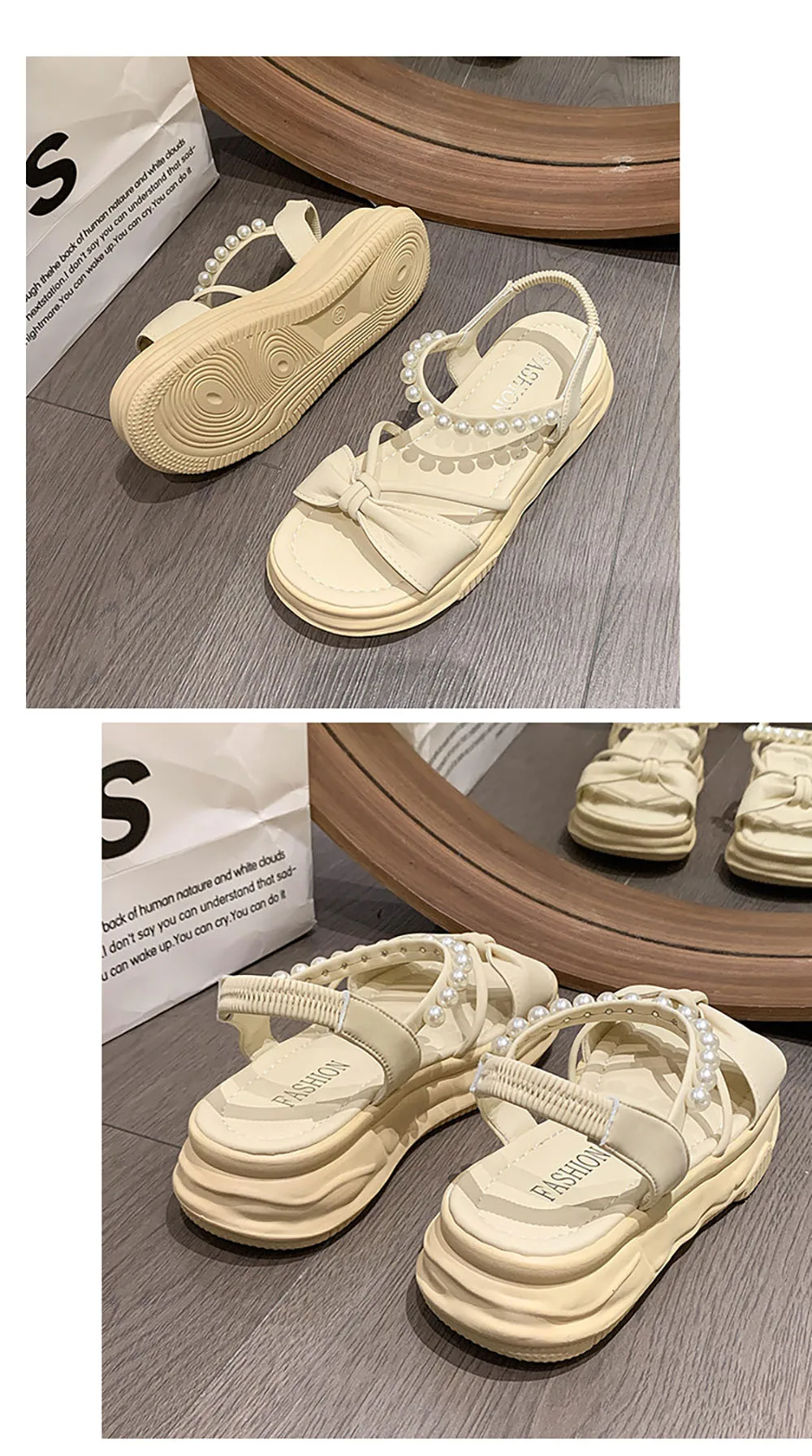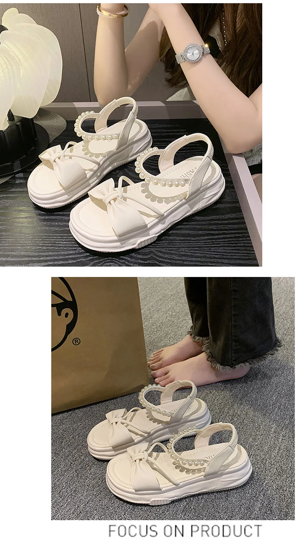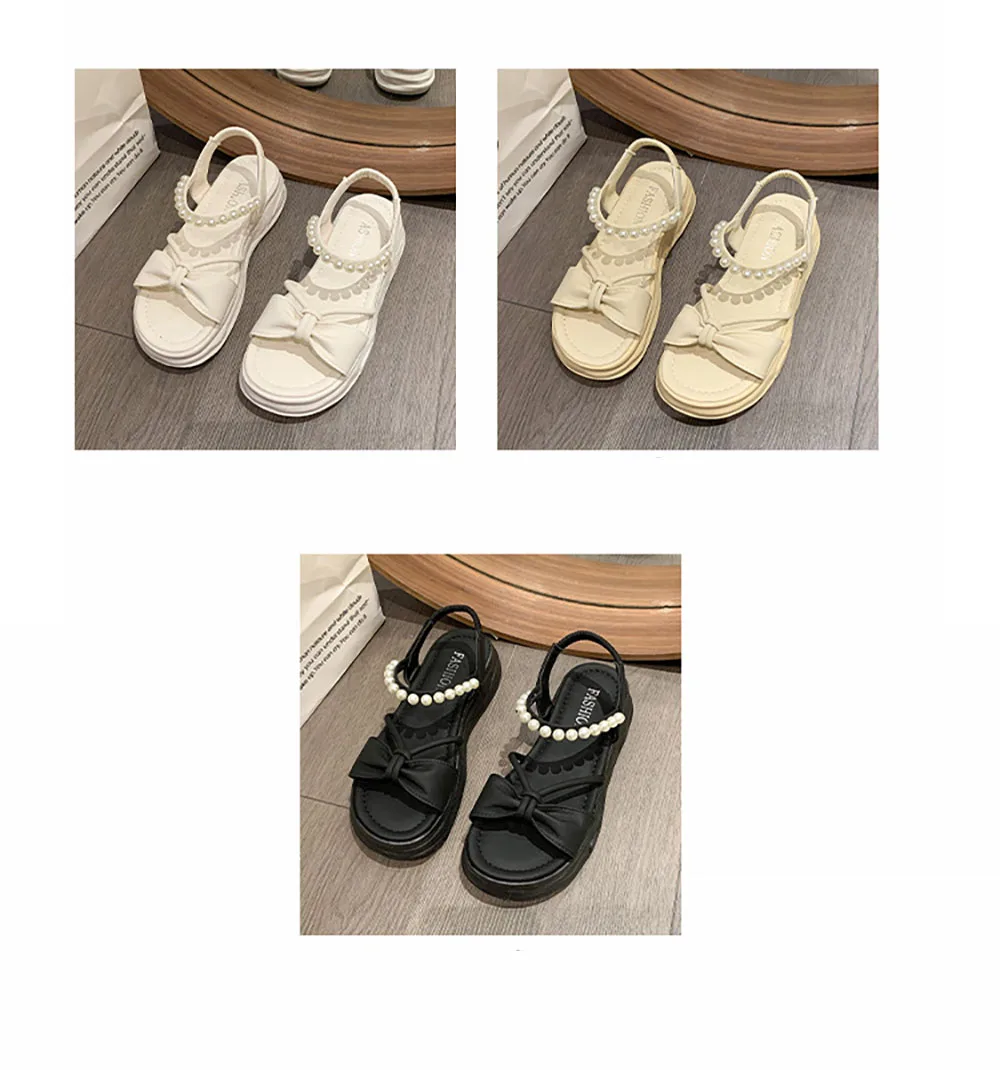 Korean Style Summer Sandals For Women Pearl Chains Travel Beach Footwearn Anti-slippery Women's Princess Shoes Summer Sandals