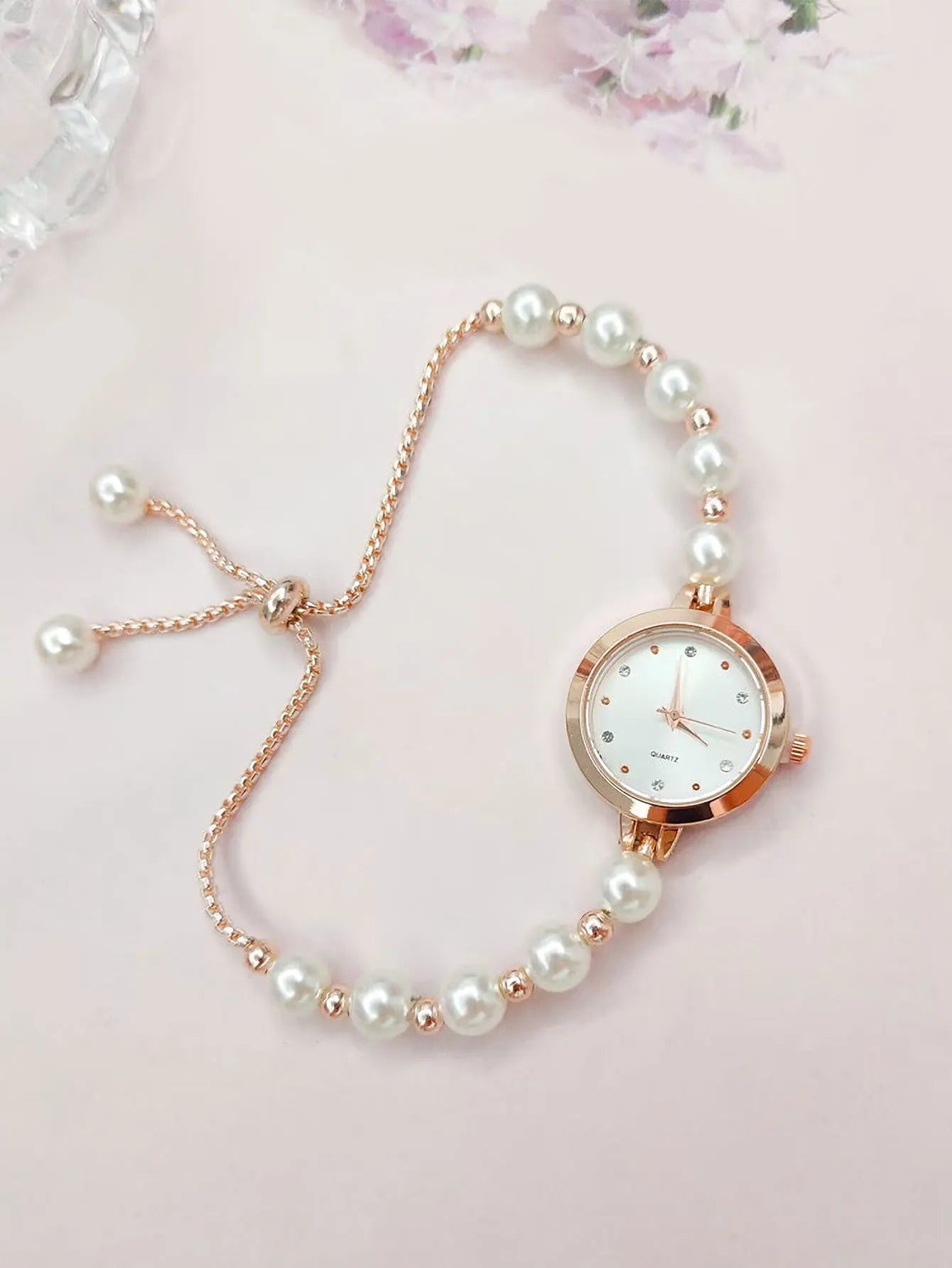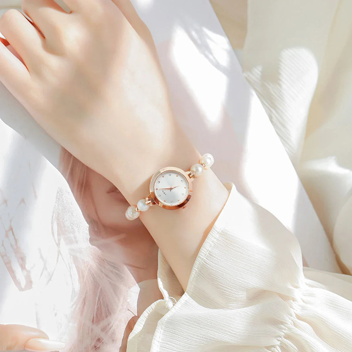 LUCKY FOX New Minimalist Style Pearl Bracelet Women Quartz Watch Fashionable Small Disc Design Light Luxury Jewelry Women Watch