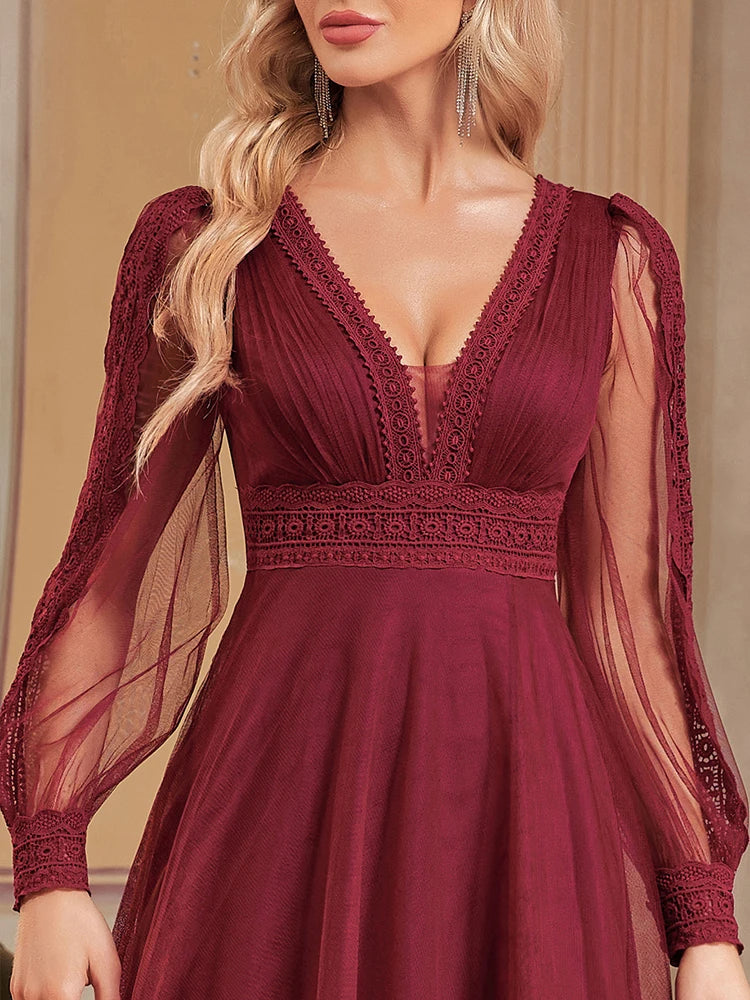Our homecoming dresses, prom dresses, and cocktail dresses are designed to make you shine. These V-neck formal evening dresses with long sleeves are a perfect choice for any special occasion, ensuring you'll make a memorable entrance.