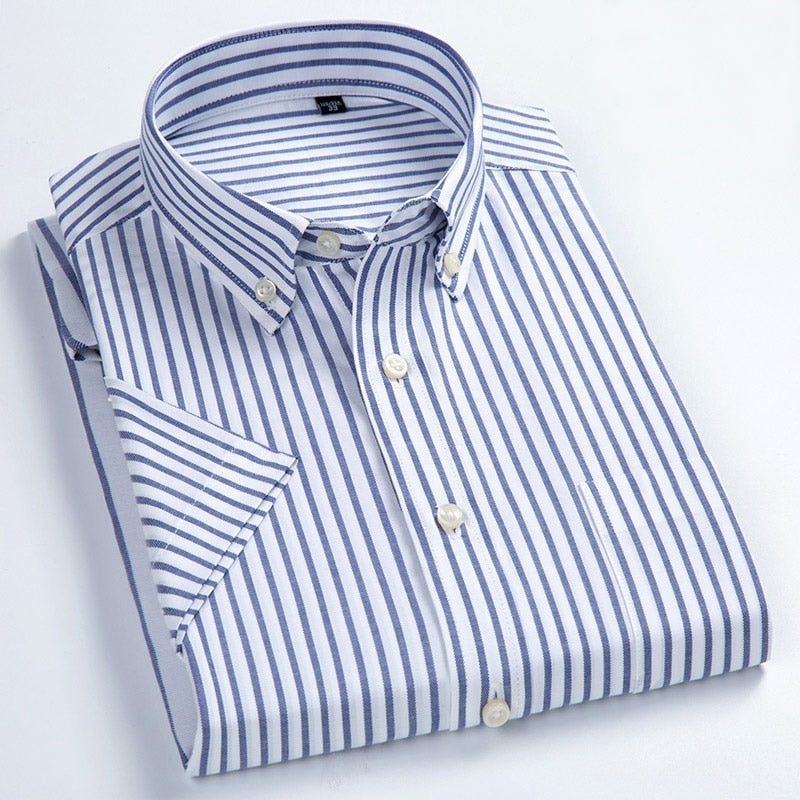 With its relaxed fit and summer-friendly material, this shirt is ideal for men who want to stay cool without compromising style. Whether you're enjoying a casual day out or dressing up for a social gathering, the striped design adds a modern, trendy touch to your look. The shirt’s bold plaid detailing provides a sophisticated flair, ensuring you stand out in any setting.