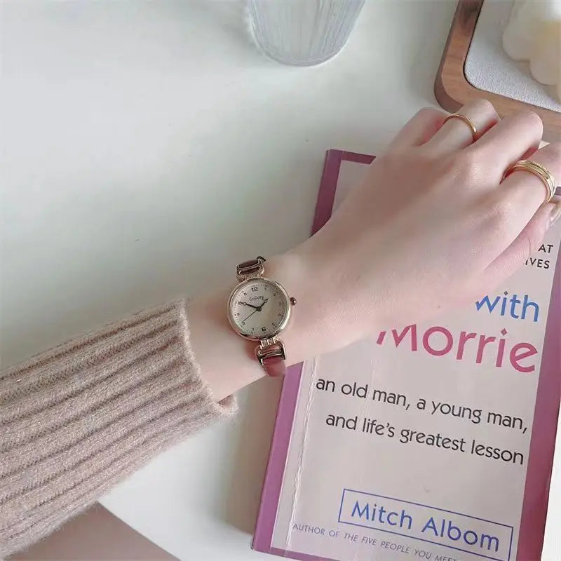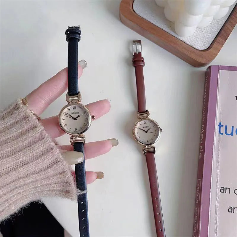 MAYZHISU Simple Women's Watches Small Round Ladies Bracelet Watch PU Leather Thin Retro Quartz Wristwatch for Women Girls Gifts