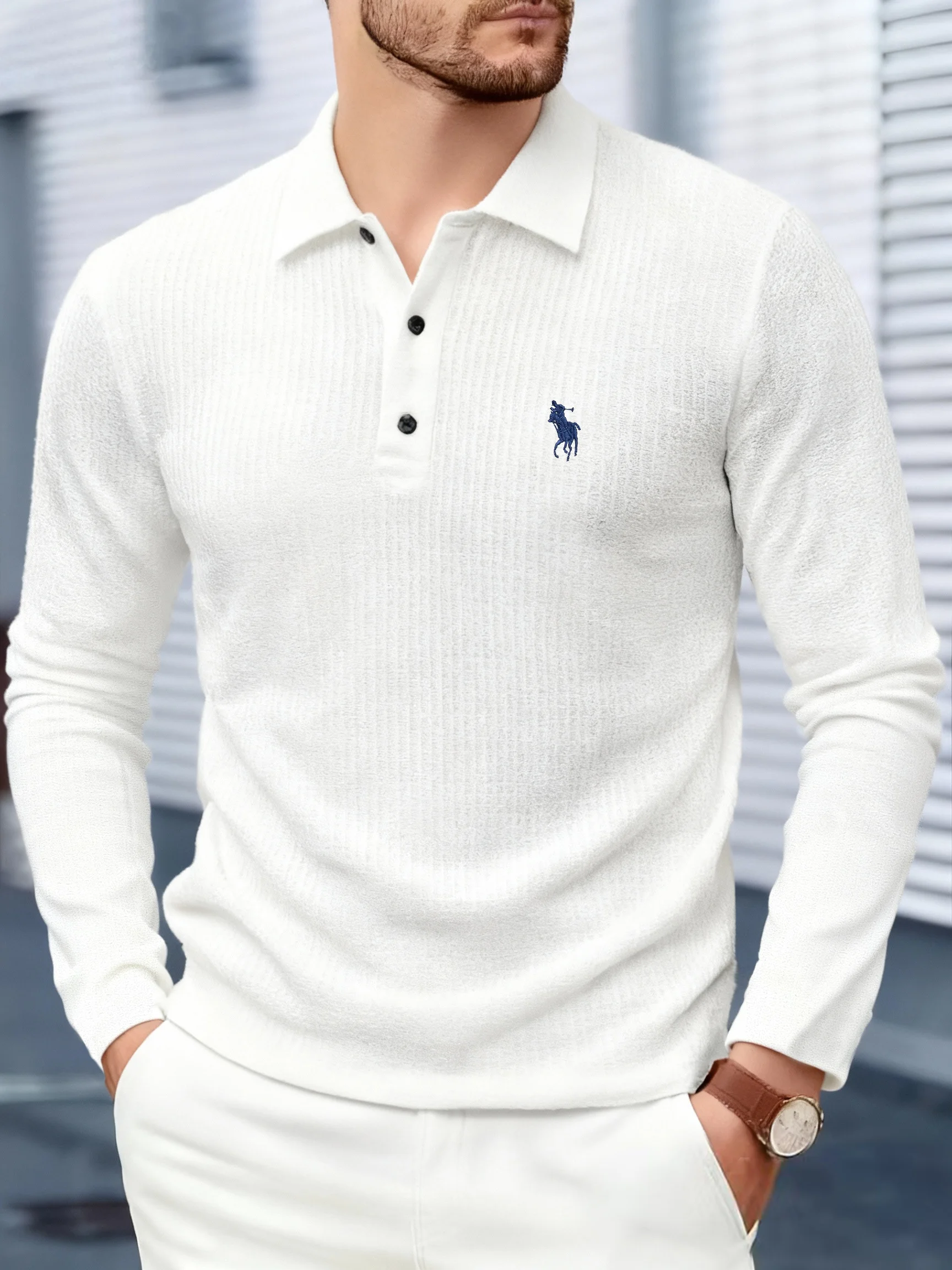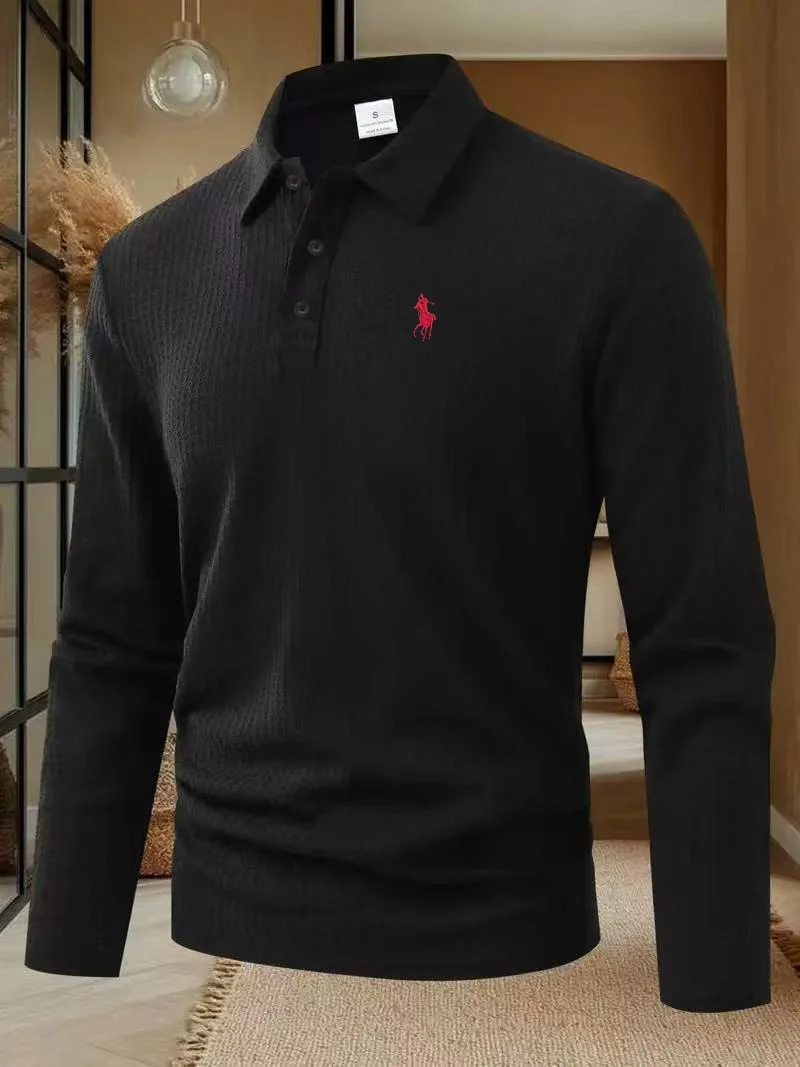Men's high-end brand exquisite embroidered polo shirt long sleeved 2025 autumn comfortable casual breathable lapel T-shirt top