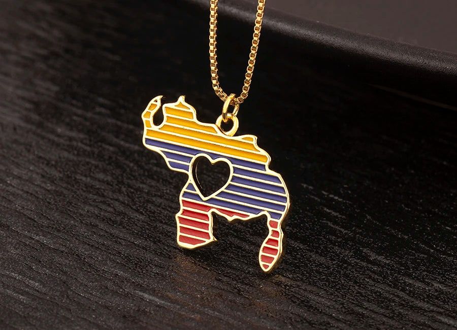 This charming necklace features a heart-shaped pendant intricately designed with the outline of Venezuela. It’s not just a piece of jewelry; it’s a statement of love, pride, and connection to your roots. The heart symbolizes affection and compassion, while the map showcases your love for the rich culture, vibrant landscapes, and spirited people of Venezuela. Wearing this necklace allows you to carry a piece of your homeland wherever you go, making it a perfect gift for yourself or a loved one.