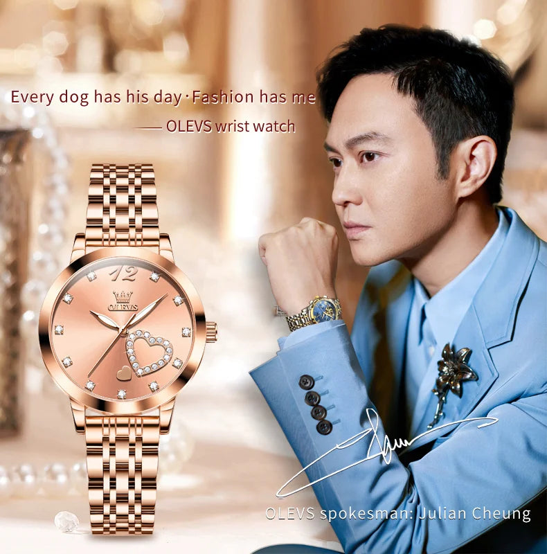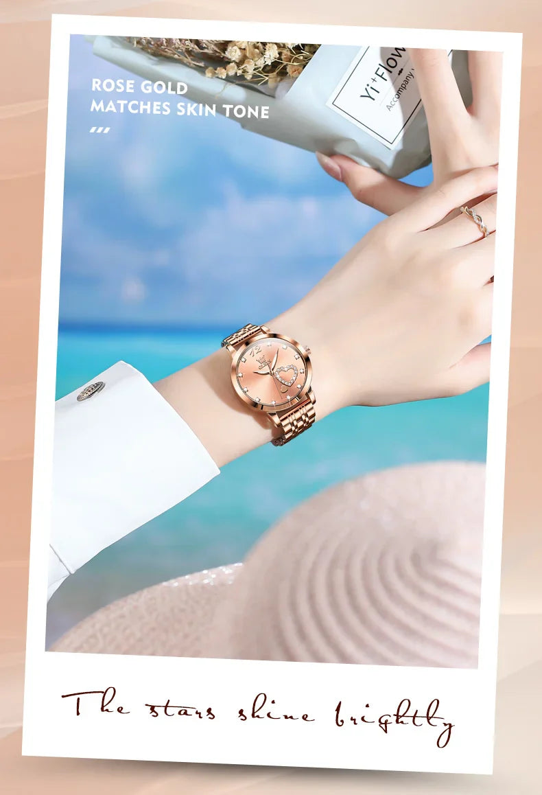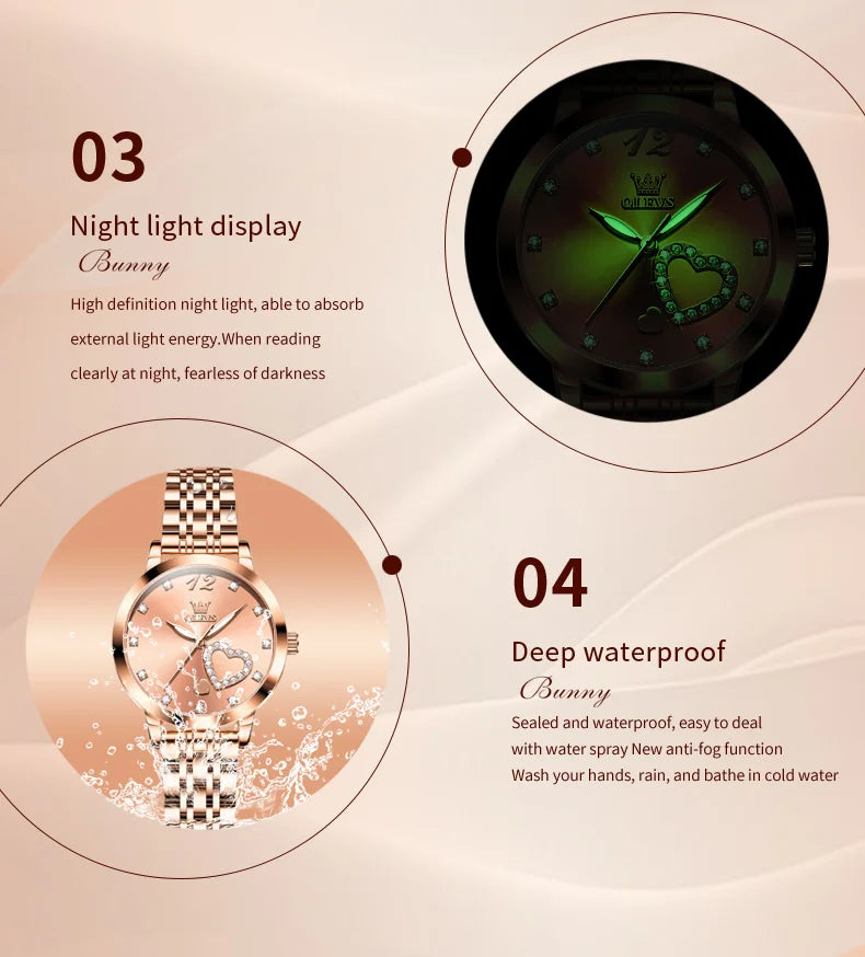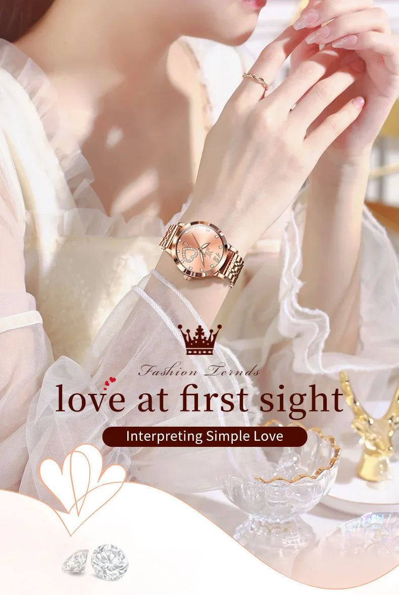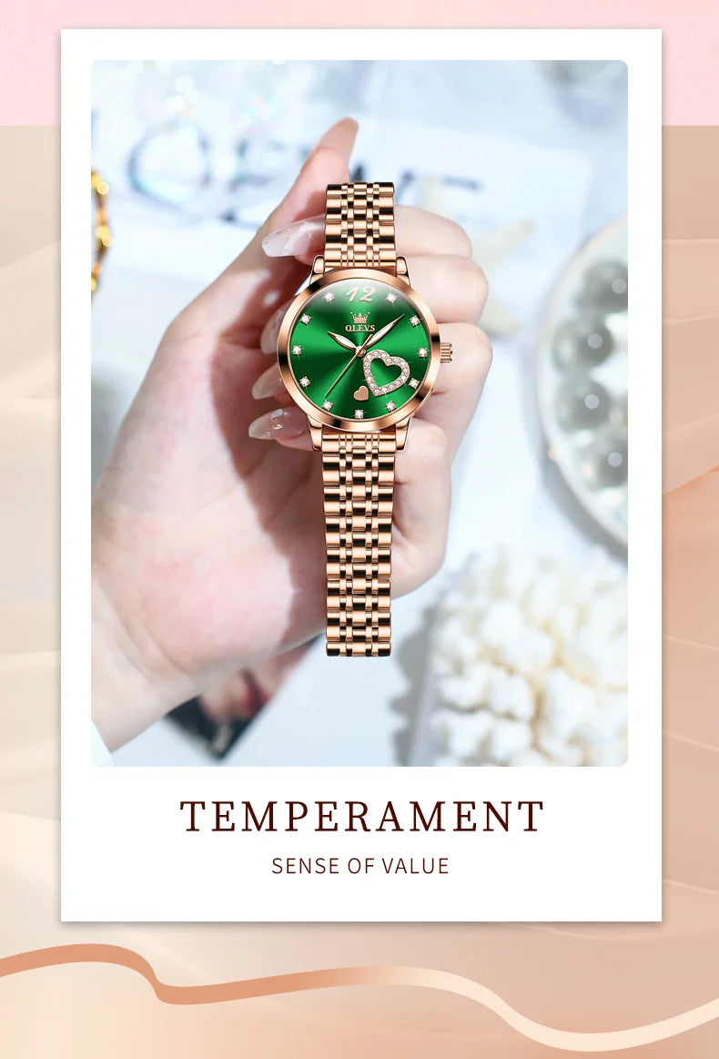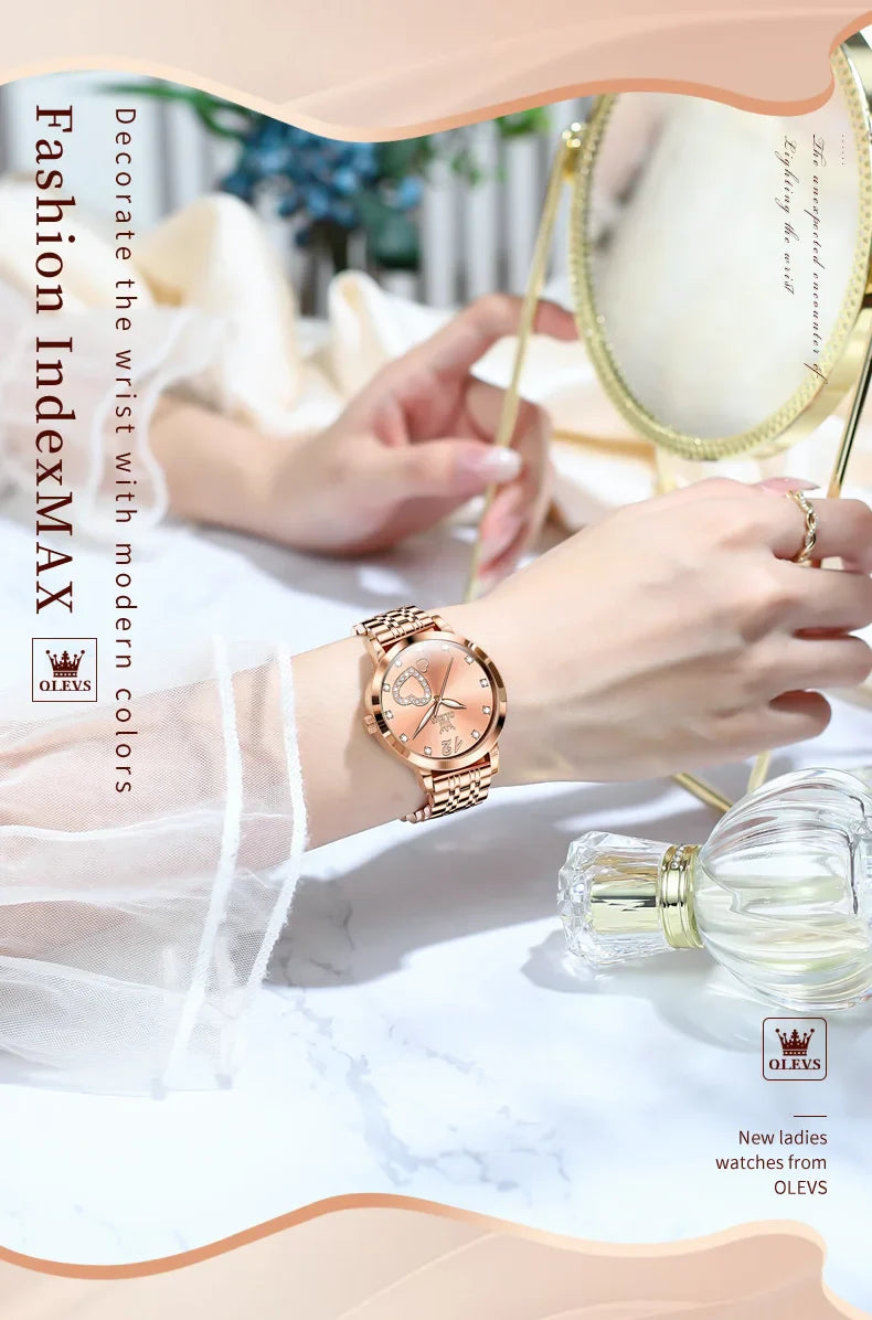 OLEVS 5189 Love Diamond Inlaid Steel Band Women's Quartz Watch