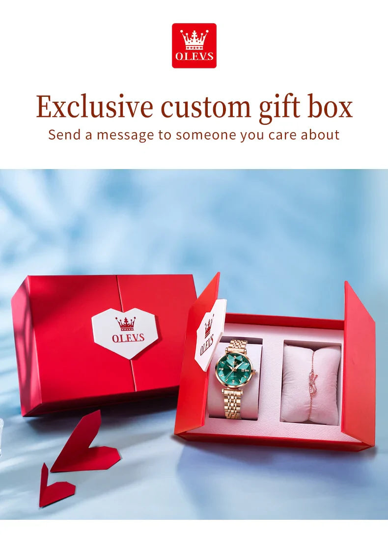 OLEVS 5536 Luxury Brand Diamond Quartz Women's Watch Fashion Elegant Rose Gold Waterproof Women's Watch Bracelet Set Reloj Mujer