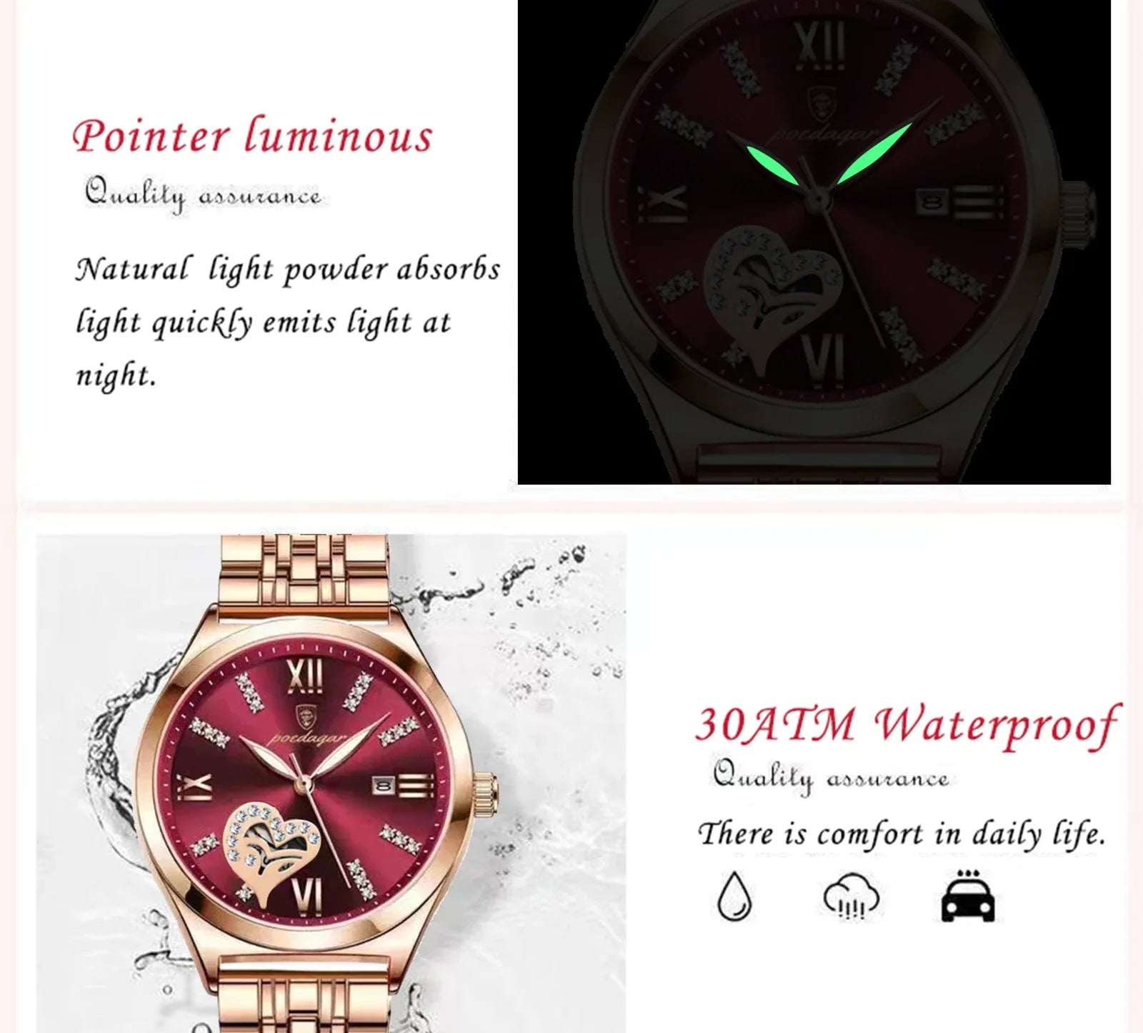POEDAGAR Luxury Watches For Women Waterproof Luminous Date Stainless Steel Woman Watch Elegant Fashion Quartz Ladies Wristwatch