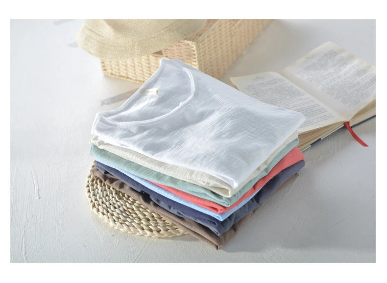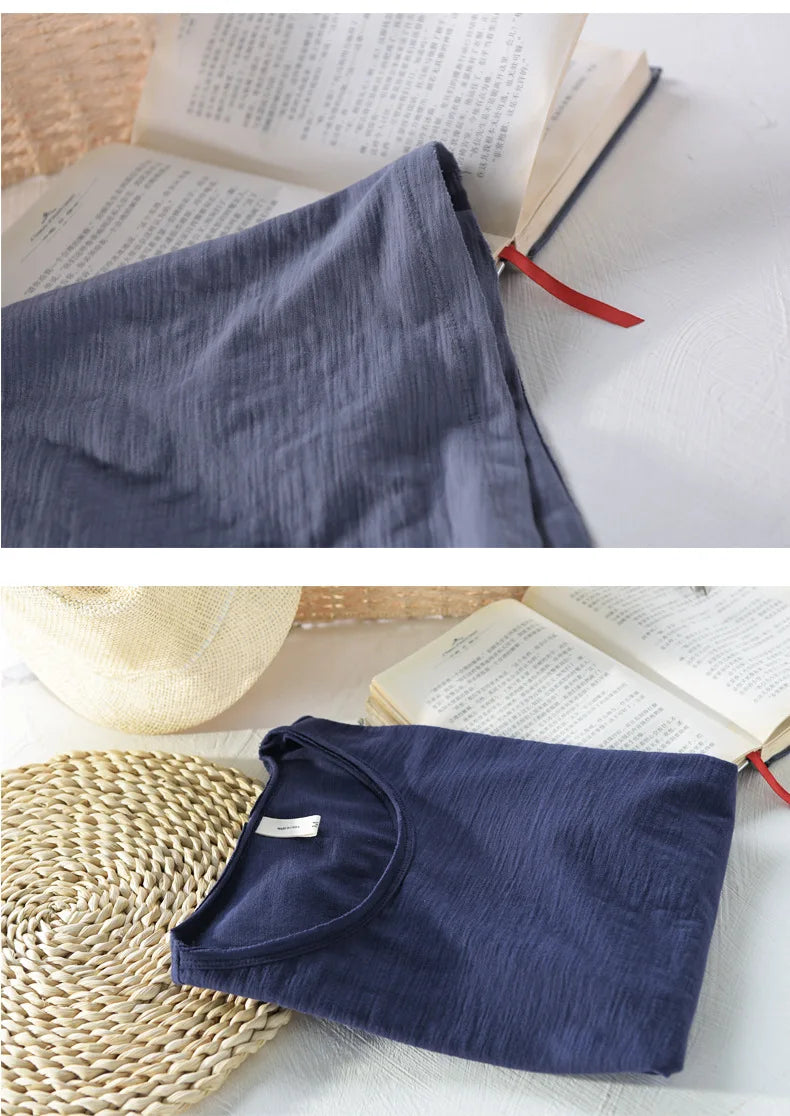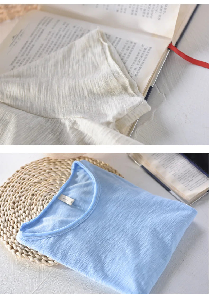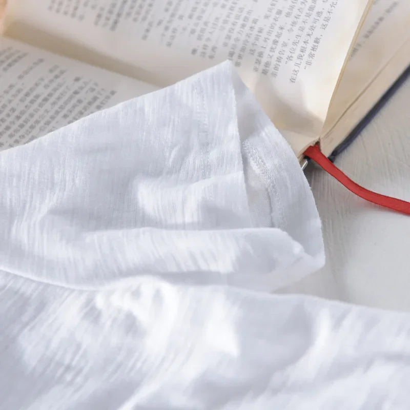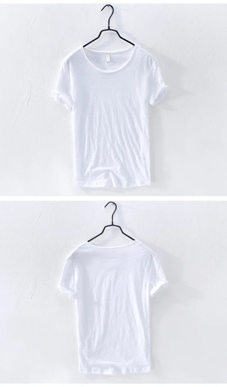 Retro Raw Edge T-Shirt for Men, 100% Cotton, Lightweight,Breathable,Slim-fit, Monochromatic, O-Neck, Casual Basic Top