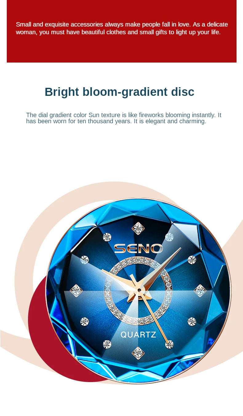 SENO Ocean Star Women Crystal Watch 2025 Top Brand Luxury Rose Gold Women Bracelet Watch For Ladies Wrist Watch Relogio Feminino