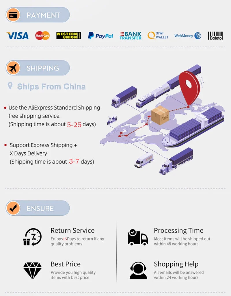 Whether you need help before or after purchase, please feel free to contact our online customers. We will reply to your message within 1-24 hours.