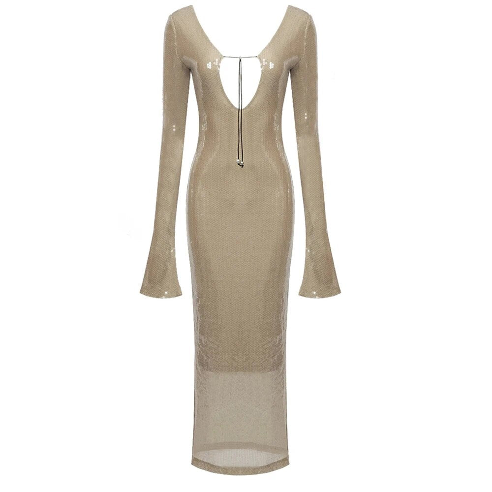 Elevate your wardrobe with our Deep V Plunge Long Sleeve Ankle-Length Dress, the perfect fusion of sophistication and style. This versatile piece is designed to make a statement, whether you're heading out for a casual day or dressing up for a special occasion. Crafted for the modern woman, this dress features a deep V neckline that adds a touch of allure, while the long sleeves offer elegance and coverage, making it ideal for cooler evenings.