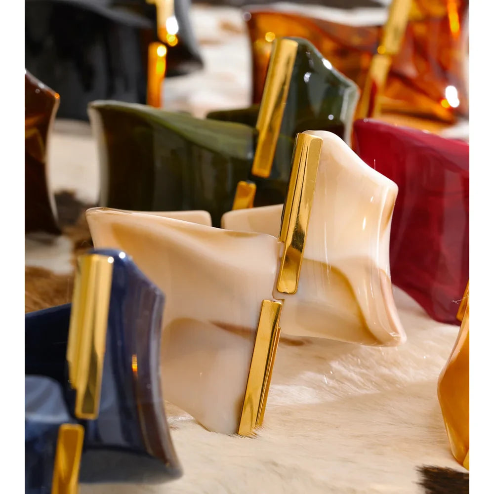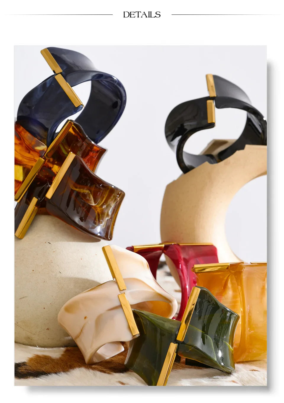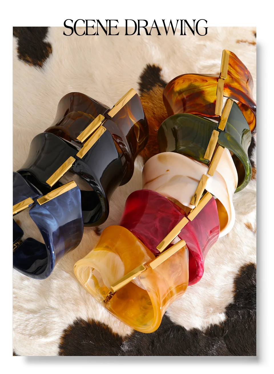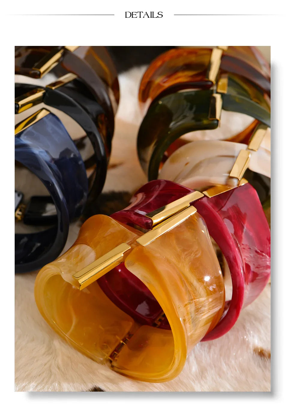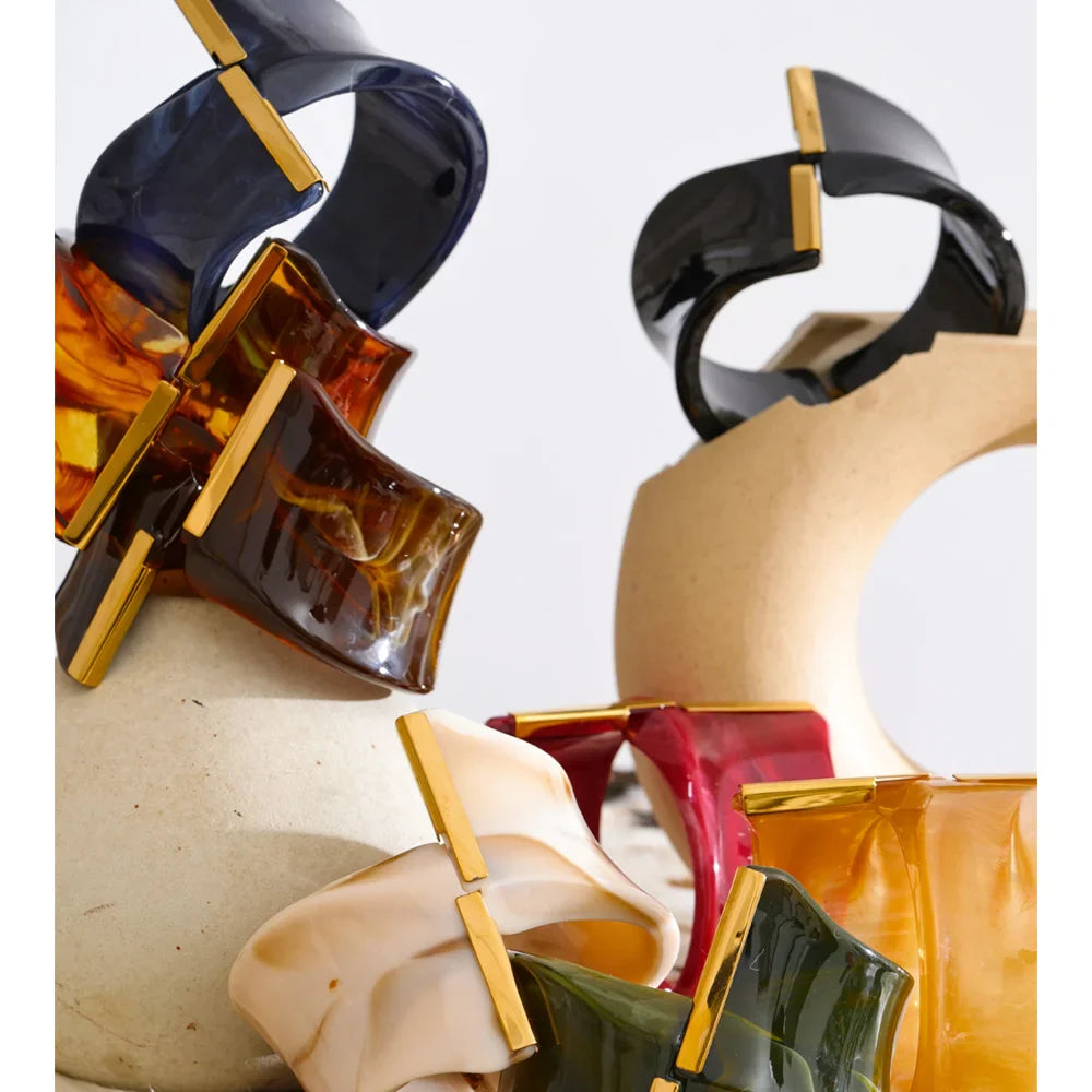 Yhpup 62mm Exclusive Design Multi-Color Acrylic Acetic Acid Wide Bracelet Bangle Stainless Steel Fashion Statement Jewelry 2025