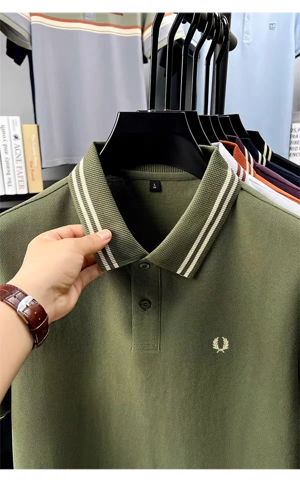100% pure cotton summer breathable men's fashion sports brand wheat embroidery short sleeves POLO shirt business casual T-shirt