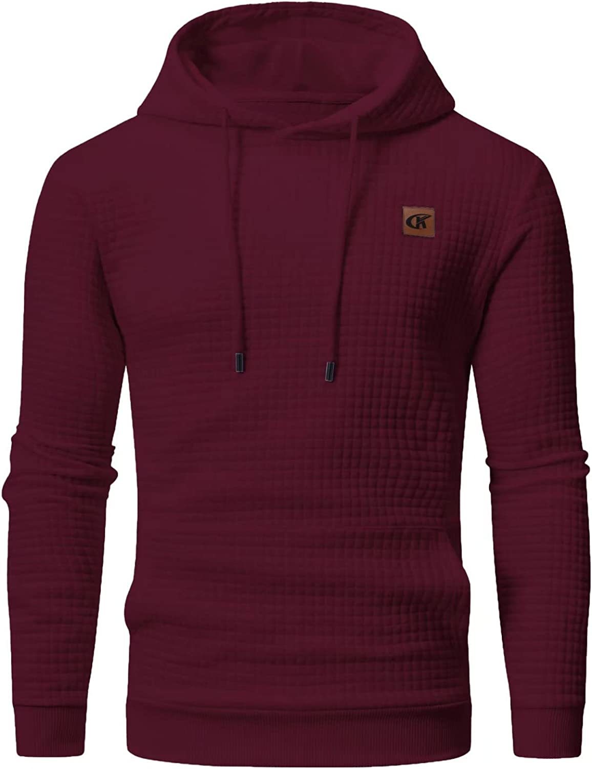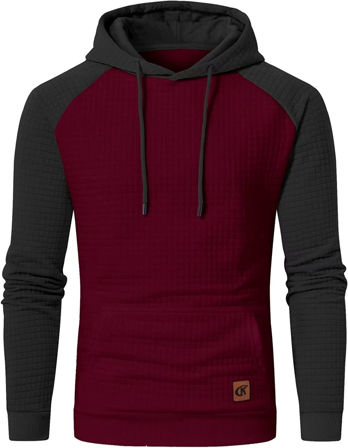Men’s Long Sleeve Plaid Jacquard Hoodie - Pullover with Drawstring & Kanga Pockets