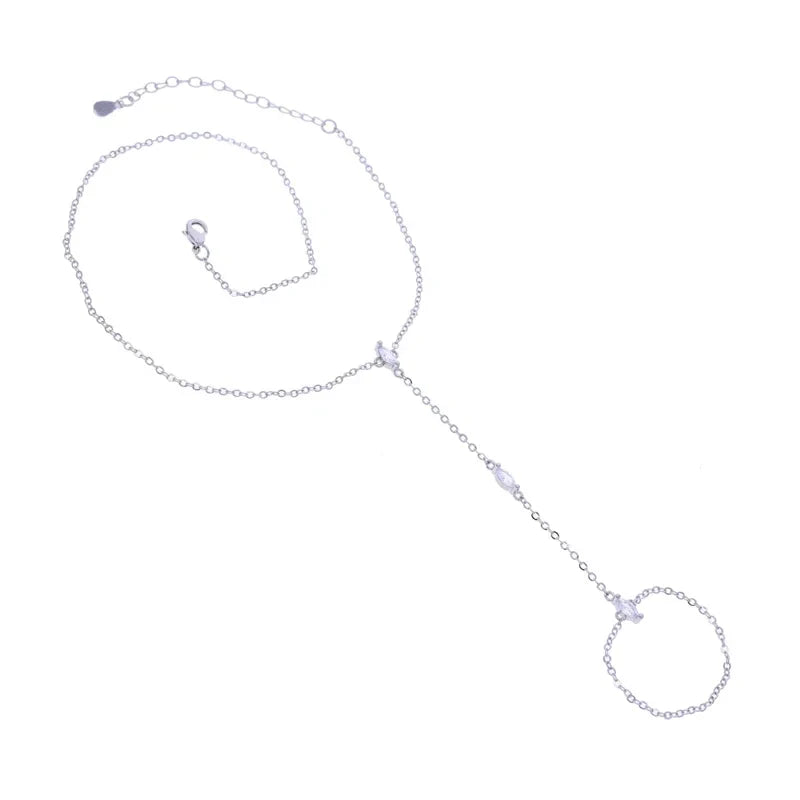 2025 New Geometric Marquise Cubic Zirconia CZ Paved Double Wrist Hand Chain Bracelet Simple Fashion Women Finger Slave Jewelry