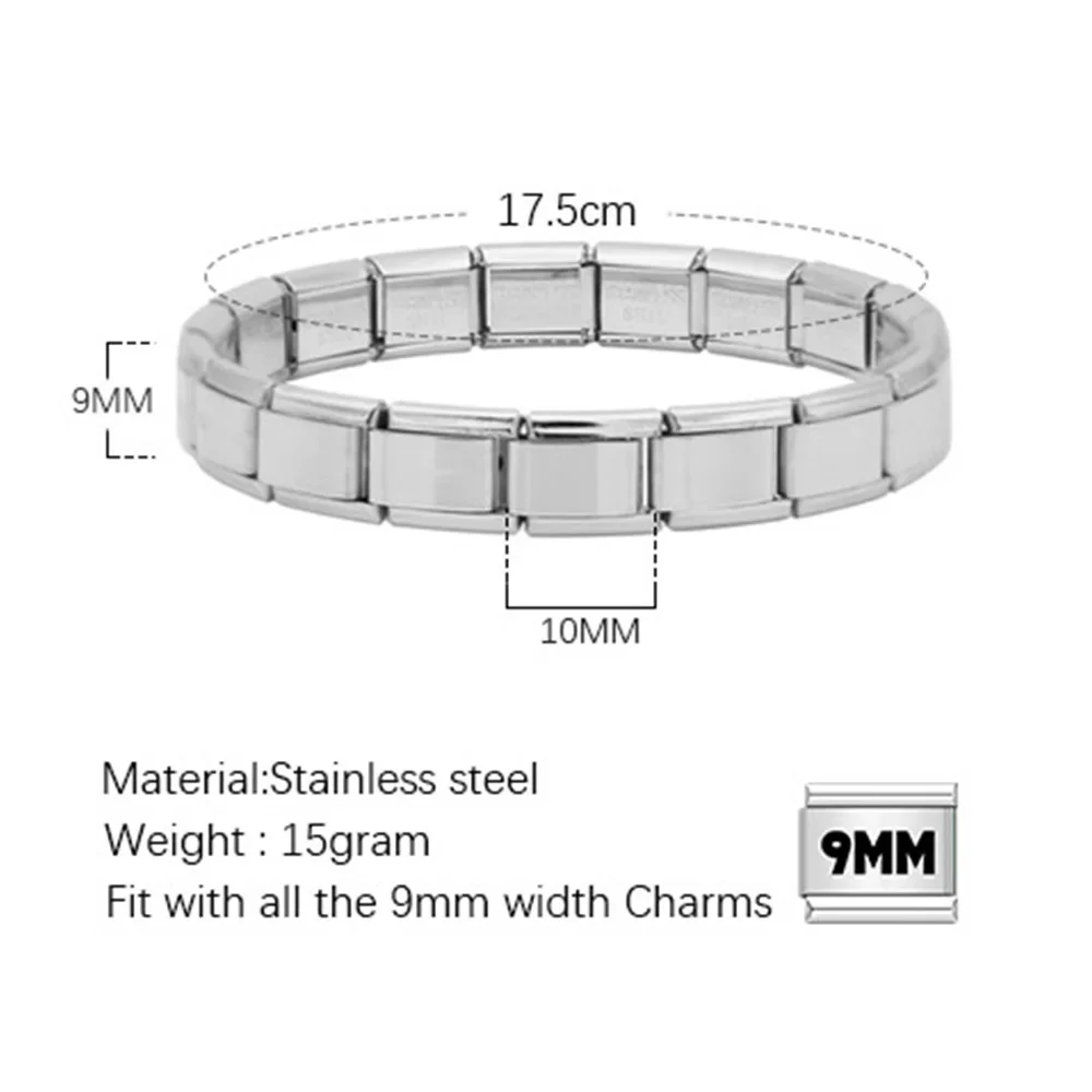 20pcs Wholesale charms italian Stainless Steel 9mm Colorful Style Elastic Bracelet for Woman Men DIY Making Gift Dropshipping