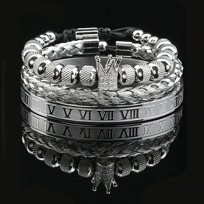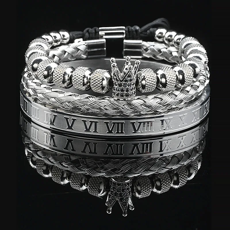 3Pcs Luxury Set Crown Charms Man Bracelet Roman Gold Women Bangles Hand Jewelry Valentine's Day Gift Creative Bracelet