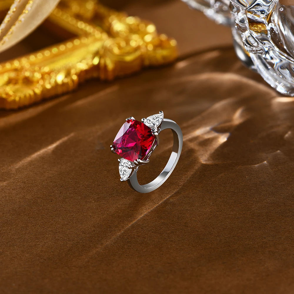 ATTAGEMS 2024 Cushion Cut 10*10mm 925 Sterling Silver Red Ruby Ring for Women With Certificed Engagement Promise Wedding Jewelry