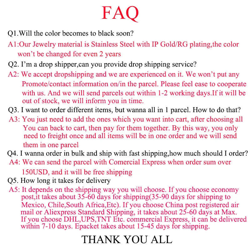 Free shipping via DHL: When order sum over 150USD