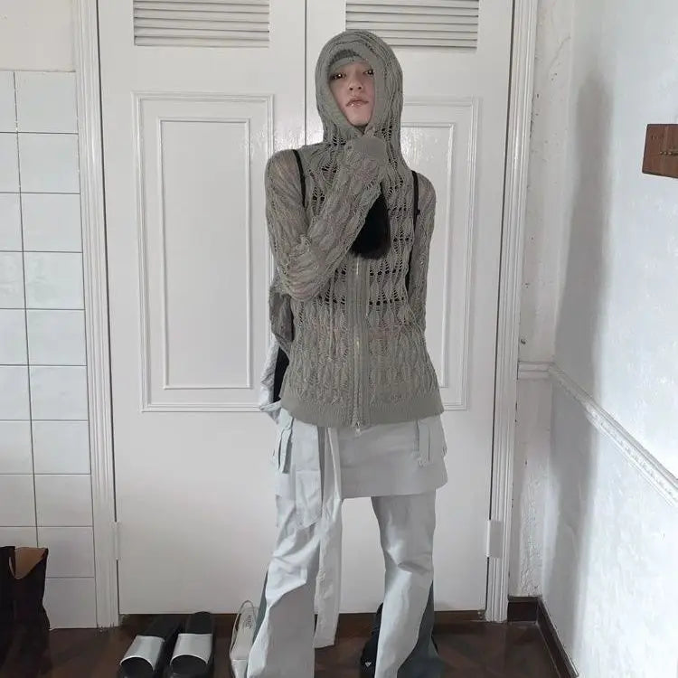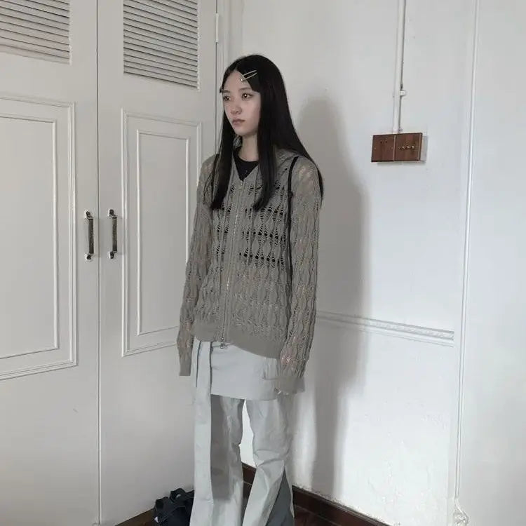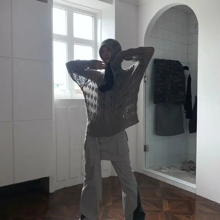 Introducing the Deeptown Harajuku Zip Up Hooded Cardigan for Women – a perfect blend of style and comfort, brought to you by our store. Inspired by Japanese Y2K fashion, this cropped cardigan adds a trendy twist to your wardrobe with its unique hollow design. Whether you're layering for a casual day out or adding a stylish touch to your favorite streetwear look, this cardigan will elevate your outfit effortlessly.