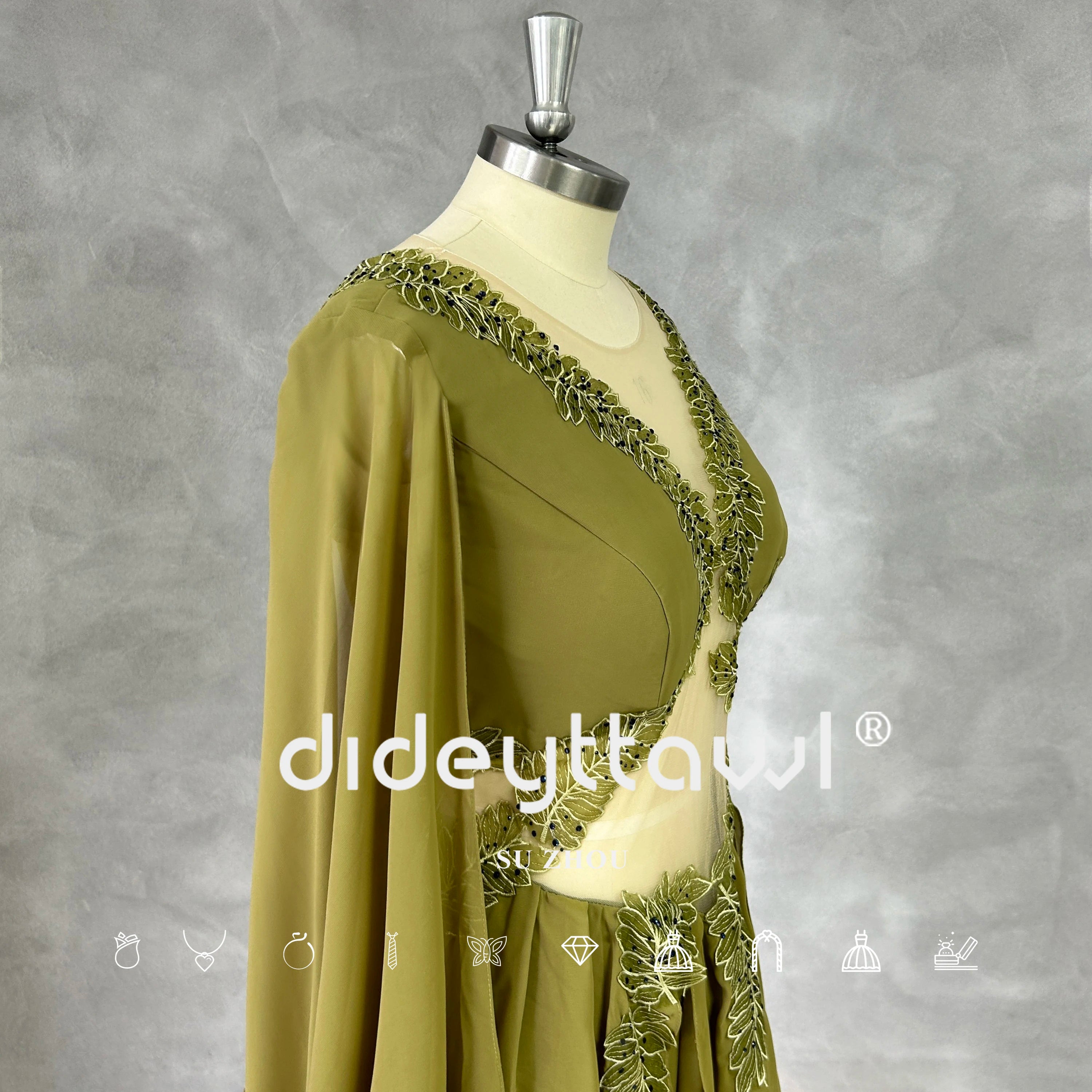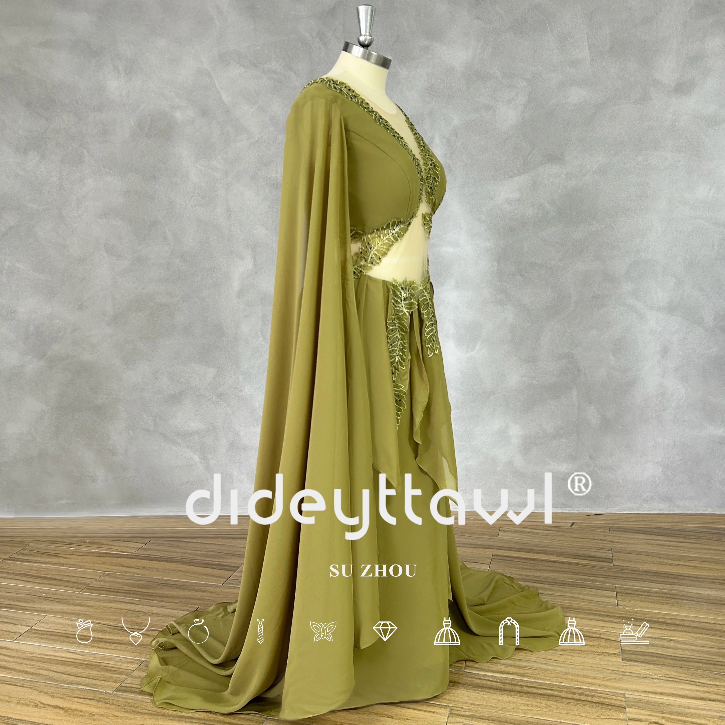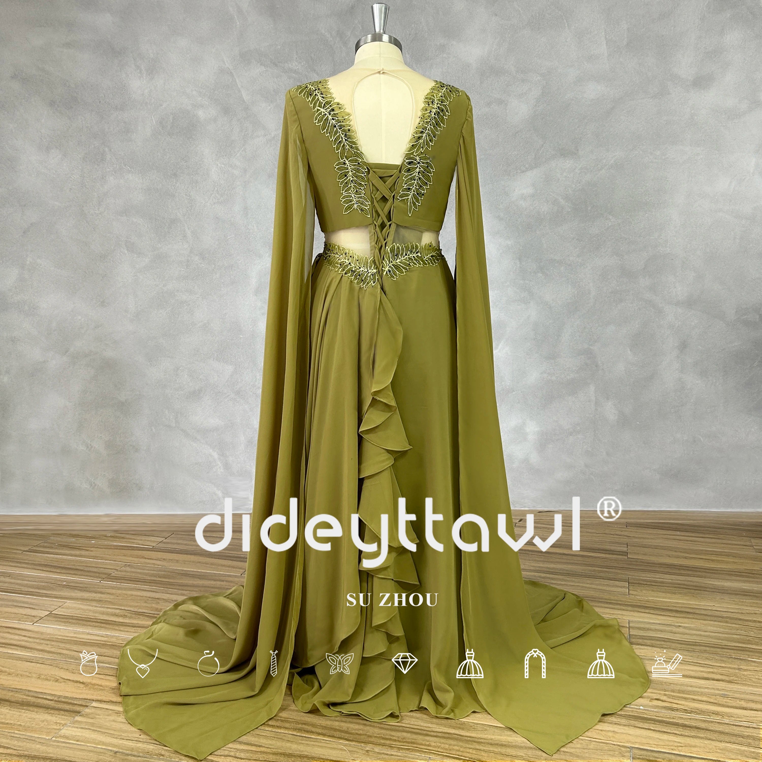 Our evening gown features a striking V-neckline with delicate cut-out details that add a touch of allure and sophistication. The long sleeves offer an elegant contrast to the daring neckline, ensuring a balanced and refined look. The A-line silhouette is universally flattering, making it an ideal choice for a variety of occasions, from birthday dresses for women to evening dresses for women.