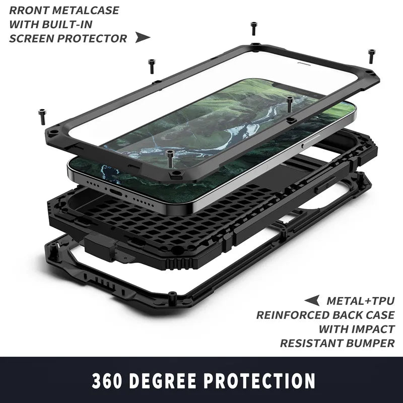 Full-Body Rugged Armor Shockproof Protective Case for iPhone 14 13 12 11 Pro Max Mini 14 Plus Kickstand Aluminum Metal Cover