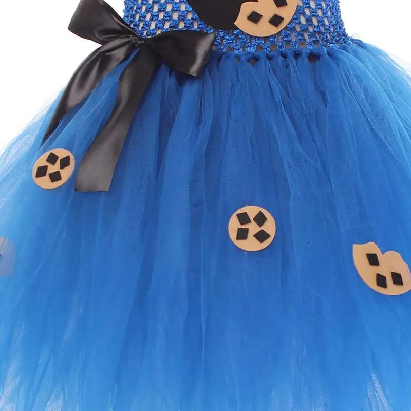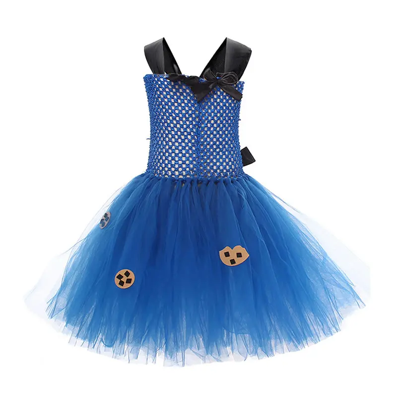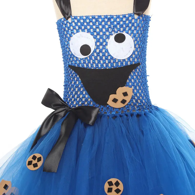 Halloween Cookie Monster Costume For Girl Lace Dress Festive Kid Up Sling Bow