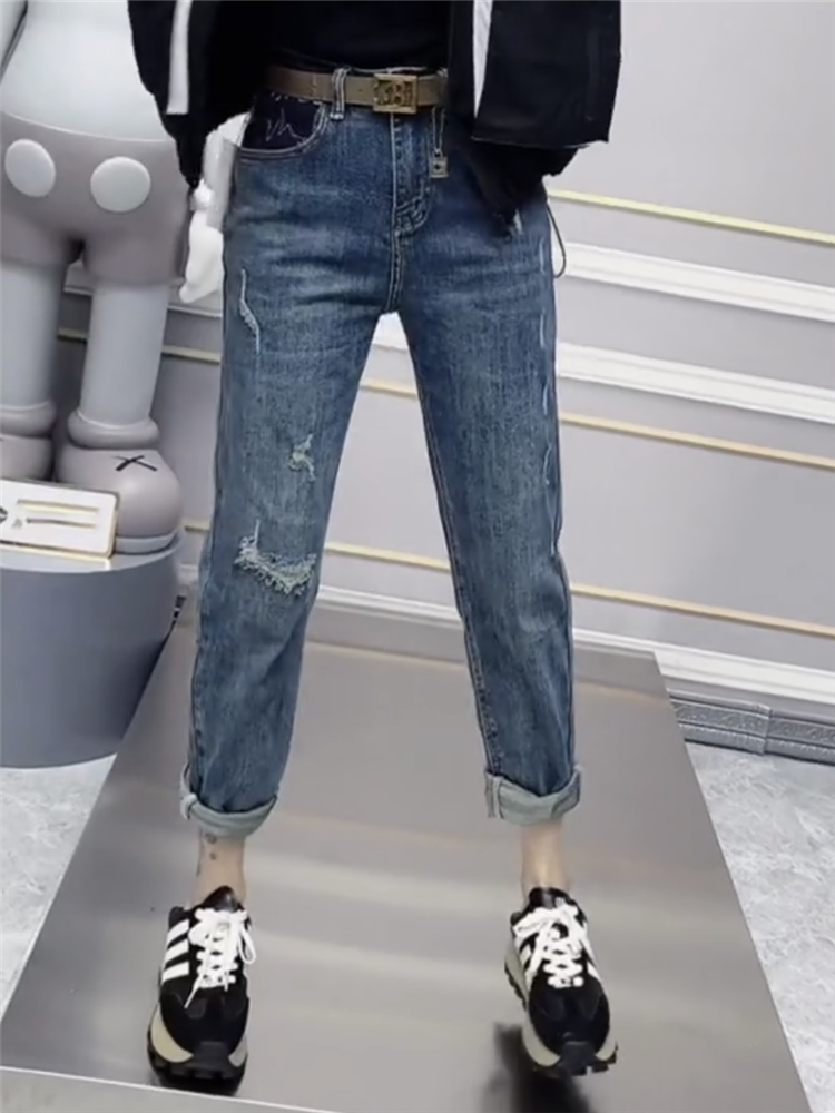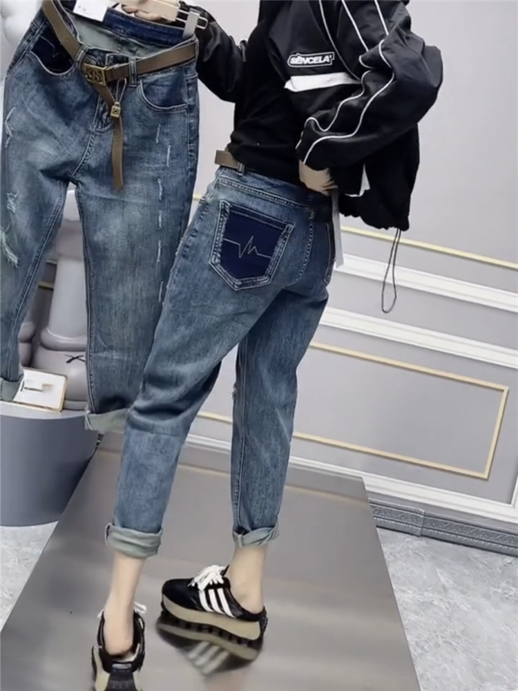 Our High Waist Contrast Color Ninth Chubby Girl mm Slimming Jeans are not just about looks; they are about feeling confident and comfortable. The high waist design is perfect for those who want to accentuate their waistline while providing a slimming effect. The contrast color detail adds a stylish twist, making these jeans a versatile piece that can be dressed up or down.