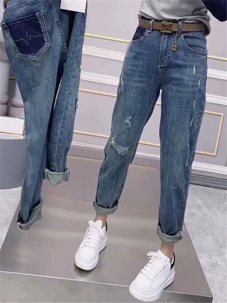 Discover the perfect blend of style and comfort with our High Waist Contrast Color Ninth Chubby Girl mm Slimming Jeans. Designed to flatter every curve, these jeans are a must-have addition to your wardrobe. Whether you’re looking for jeans for women that offer a slimming effect or simply want to stay on-trend, these jeans are your go-to choice.