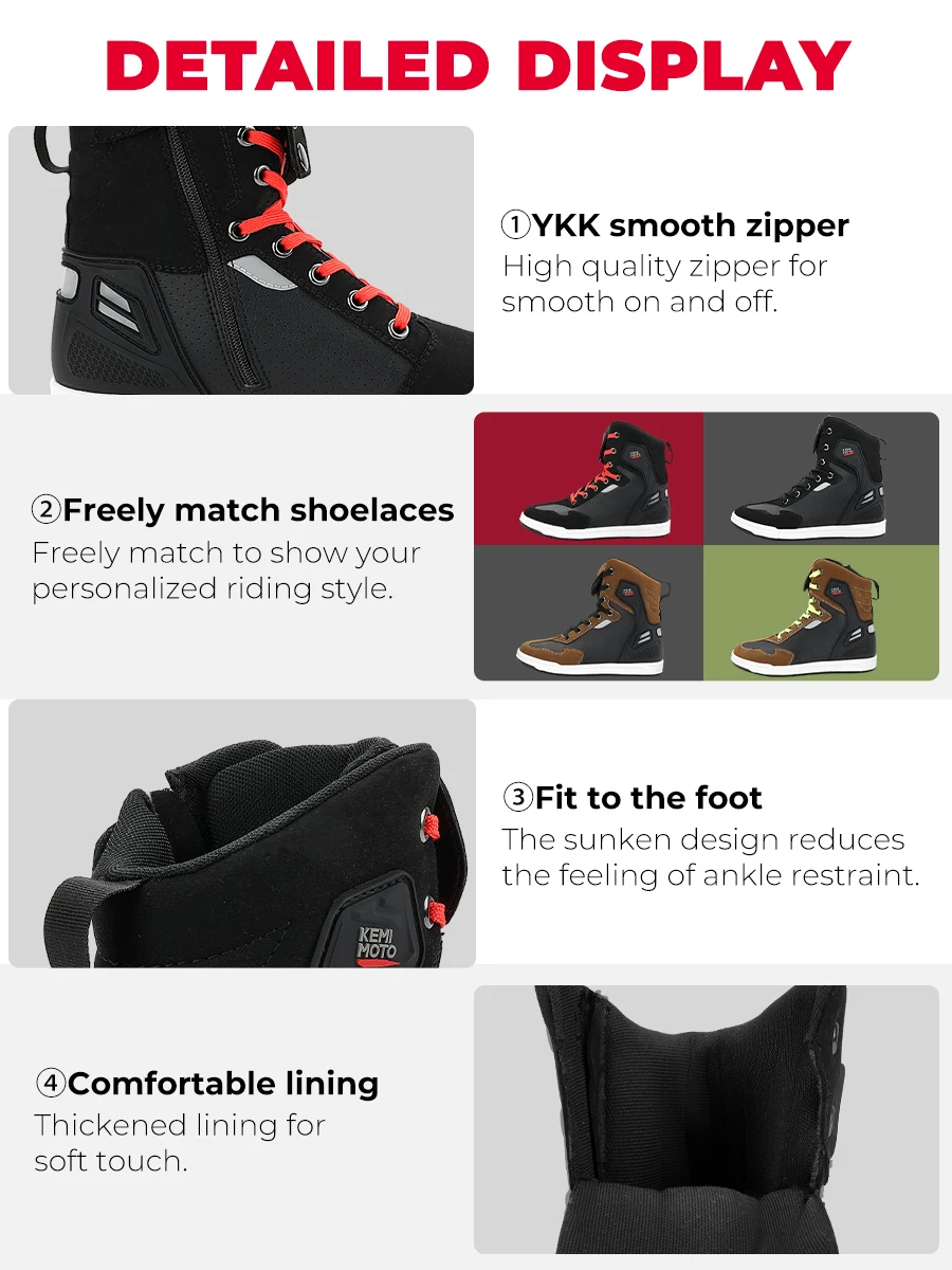 【Ankle Protection】Built-in ankle protectors on both the inner and outer sides of the shoe provide comprehensive protection during riding, reducing the risk of injury.